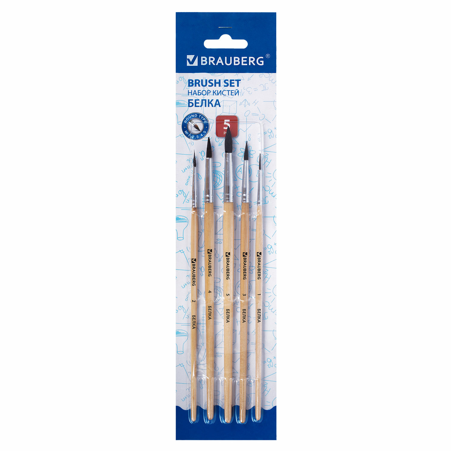 Кисти BRAUBERG, набор 5 шт. (белка, круглые № 1, 2, 3, 4, 5), блистер Код товара: 200217 422,73 ₽ Купить Производитель:BRAUBERG Набор из пяти кистей разного размера BRAUBERG позволяет начинающим художникам решать любые творческие задачи в детском саду, школе и дома. Кисти из волоса белки отлично впитывают и отдают краску, хорошо держат форму, долговечны и надежны. Благодаря кистям №1, 2 и 3 ребенку будет комфортно прорисовывать мелкие детали. Кисти №4 и 5 позволят делать более крупные мазки и линии. Деревянную лакированную рукоятку кисти удобно держать в руке.Производство: КитайКол-во кистей в наборе: 5 шт.Тип кисти: круглаяНомер кисти: 1, 2, 3, 4, 5Ворс: белкаРучка: укороченнаяУпаковка: блистер с европодвесомСерия: SchoolВес: 35 грРазмер упаковки: 0.9 × 29.8 × 7 смОбъём: 0.0002 м3Промежуточная упаковка: 12 штТранспортная упаковка: 288 штШтрих-код: 4606224045467 Сертификат-1.jpg Сертификат-2.jpg Сертификат-3.jpg