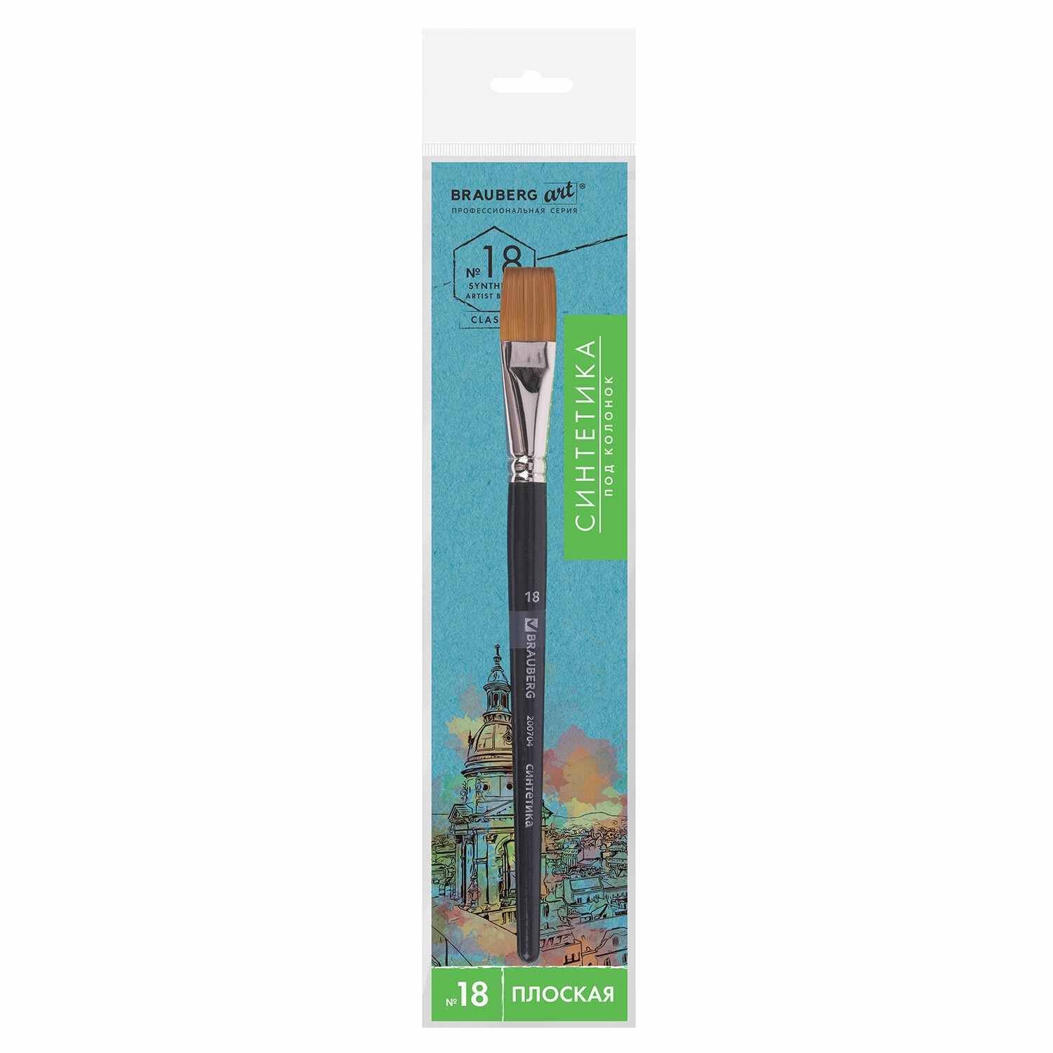 Кисть художественная профессиональная BRAUBERG ART CLASSIC, синтетика мягкая под колонок, плоская, № 18, короткая ручка Код товара: 200704 213,44 ₽ Купить Производитель:BRAUBERG ART Художественная профессиональная синтетическая кисть BRAUBERG ART "CLASSIC" № 18 предназначена для работы с акварелью, с масляными красками и другими материалами для живописи. Изготовлена с применением высококачественной синтетики, имитирующей свойства натурального волоса колонка. Кисть отличается универсальностью в использовании, обусловленной упругостью ворса и прекрасными впитывающими свойствами пучка. Короткая ручка из древесины покрыта лаком, что защищает ее от воздействия красок и влаги. Форма пучка - плоская, номер кисти соотвествует реальной ширине пучка в миллиметрах. Упаковка - пакет с европодвесом и картонной подложкой.Производство: КитайНомер кисти: 18Тип кисти: плоскаяСерия: CLASSIC Synthetic softРучка: укороченнаяМатериал: мягкая синтетика, имитация колонкаДиаметр (ширина) кисти: 18 ммВыход волоса: 23 ммУпаковка: пакет с европодвесом и картонной подложкойВес: 28 грРазмер упаковки: 1.3 × 27 × 7.1 смОбъём: 0.0003 м3Промежуточная упаковка: 5 штТранспортная упаковка: 250 штШтрих-код: 4606224179353 Сертификат-1.jpg Сертификат-2.jpg Сертификат-3.jpg