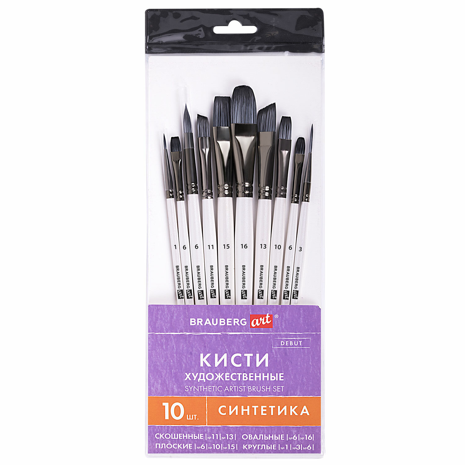 Кисти BRAUBERG ART DEBUT изготовлены с применением синтетики. Отличаются универсальностью в использовании, обусловленной упругостью ворса и прекрасными впитывающими свойствами пучка. Короткая ручка из древесины покрыта лаком, что защищает ее от воздействия красок и влаги. В набор входят 10 кистей различной формы. Форма пучка: скошенные – № 11, 13; овальные – 6, 16; плоские – № 6, 10, 15; круглые – № 1, 3, 6. Номер кисти соответствует реальной ширине пучка в миллиметрах. Упаковка – ПВХ-пакет с европодвесом и картонной подложкой.