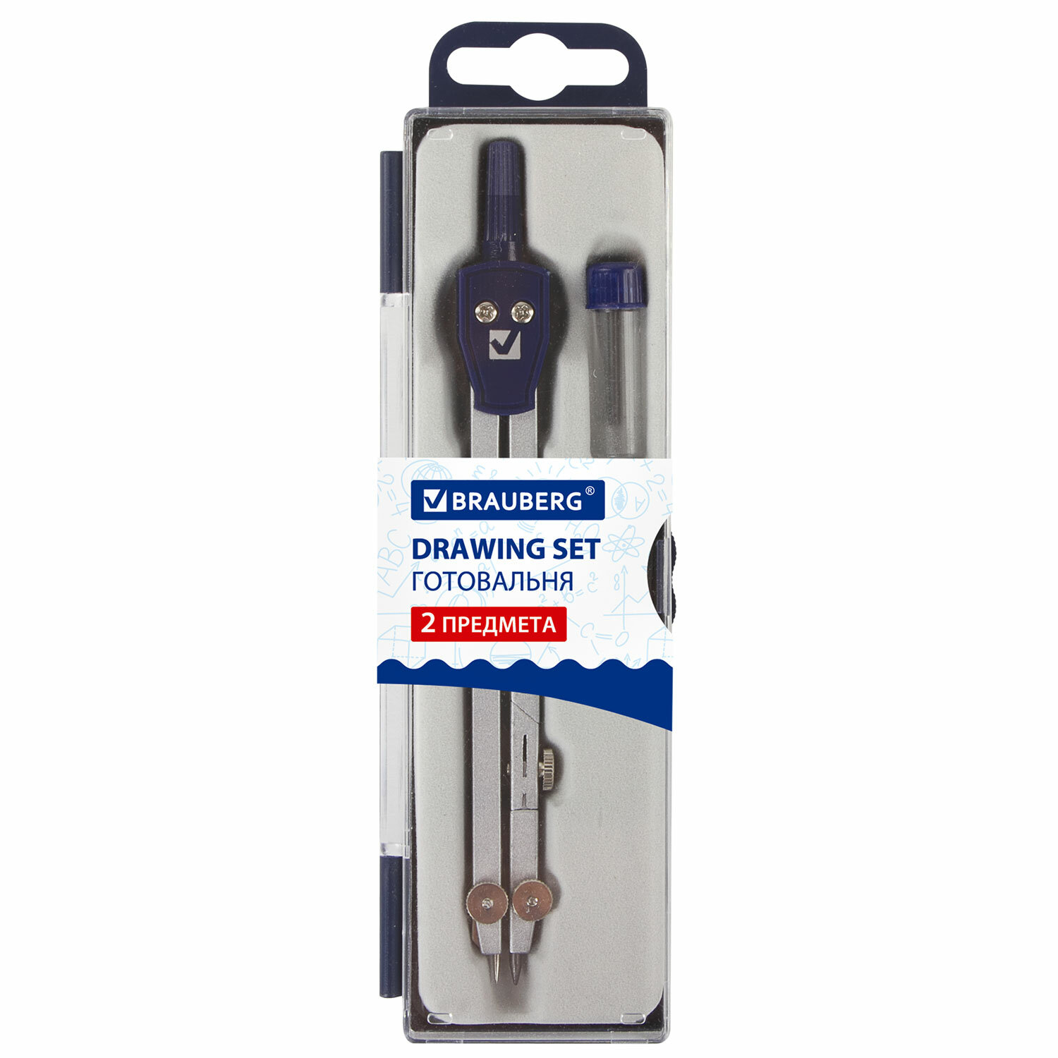 Готовальня BRAUBERG "Student Oxford", 2 предмета: циркуль 140 мм со сгибаемой ножкой, грифель, пенал Код товара: 210323 323,73 ₽ Купить Производитель:BRAUBERG Металлическая готовальня BRAUBERG "Student Oxford" предназначена для выполнения чертежных работ. Для учеников старших классов и студентов. В состав готовальни входят 2 предмета: - циркуль; - пенал с запасным грифелем. Циркуль длиной 140 мм имеет одну сгибаемую штангу и подстраиваемую иглу. Изготовлен из металла, дополнительный цвет элементов – синий. Поставляется в пластиковом пенале с прозрачной крышкой и с европодвесом.Производство: КитайТип товара: готовальняСерия: Student OxfordКоличество предметов: 2 шт.Длина циркуля: 140 ммТип штанги: одна сгибаемаяКомплектация: пенал с запасным грифелем, циркульЦвет корпуса: синий/серебристыйМатериал: металлУпаковка: пластиковый пенал с европодвесомВес: 67 грРазмер упаковки: 1.8 × 16.9 × 4.8 смОбъём: 0.0002 м3Промежуточная упаковка: 20 штТранспортная упаковка: 240 штШтрих-код: 4606224052298 Сертификат-1.jpg Сертификат-2.jpg Сертификат-3.jpg