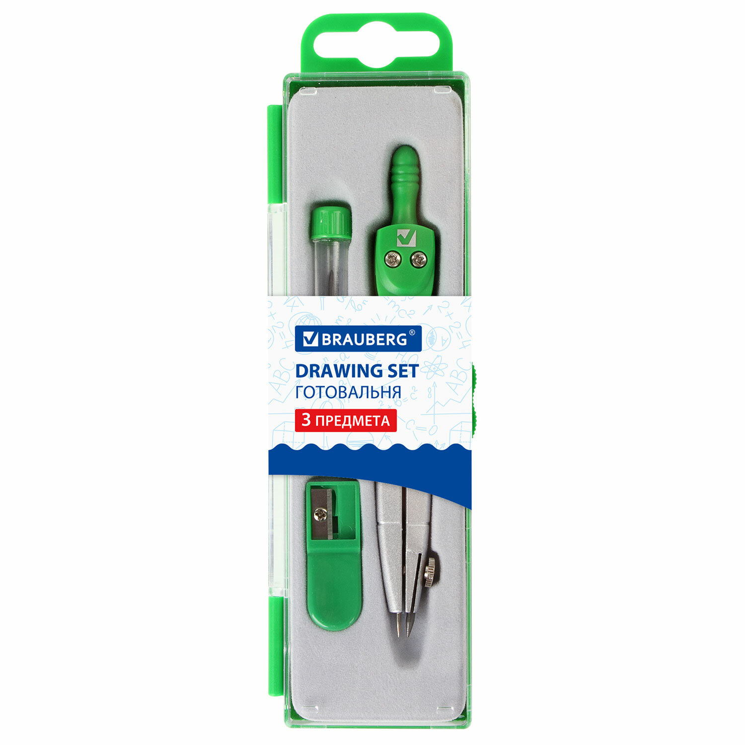 Готовальня BRAUBERG "Klasse", 3 предмета: циркуль 115 мм, грифель, точилка, пенал с подвесом Код товара: 210328 226,11 ₽ Купить Производитель:BRAUBERG Металлическая готовальня BRAUBERG "Klasse" предназначена для выполнения чертежных работ. Для учеников младших и средних классов. В состав готовальни входят 3 предмета: - циркуль; - точилка; - пенал с запасным грифелем. Циркуль длиной 115 мм имеет несгибаемые штанги. Изготовлен из металла, дополнительный цвет элементов – зеленый. Поставляется в пластиковом пенале с европодвесом.Производство: КитайТип товара: готовальняСерия: KlasseКоличество предметов: 3 шт.Длина циркуля: 115 ммТип штанги: несгибаемыеКомплектация: пенал с запасным грифелем, точилка, циркульЦвет корпуса: зеленый/серебристыйМатериал: металлУпаковка: пластиковый пенал с европодвесомВес: 55 грРазмер упаковки: 1.9 × 16.8 × 4.9 смОбъём: 0.0002 м3Промежуточная упаковка: 20 штТранспортная упаковка: 240 штШтрих-код: 4606224052342 Сертификат-1.jpg Сертификат-2.jpg Сертификат-3.jpg