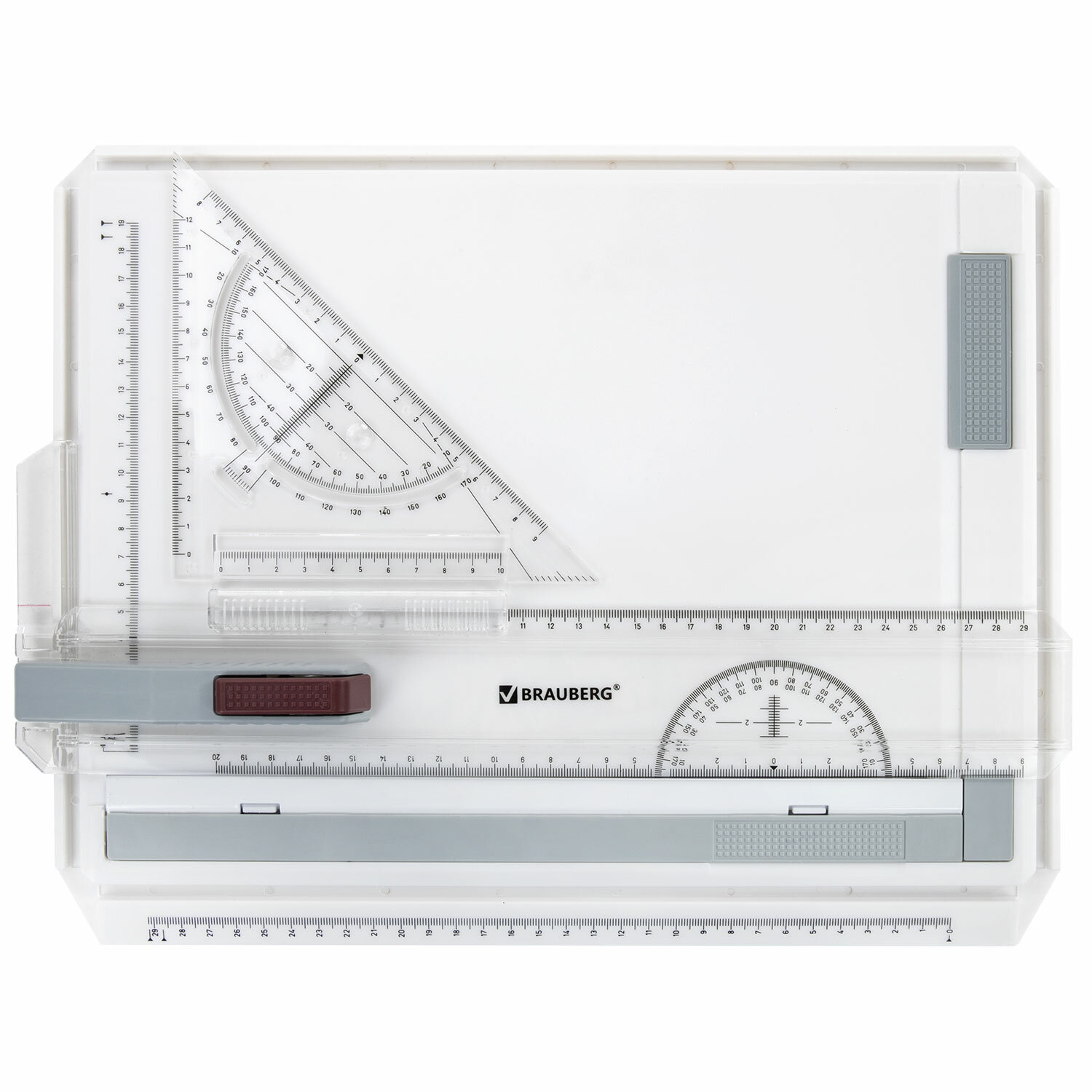 Доска чертежная А4, 370х295 мм, с рейсшиной и треугольником, BRAUBERG Код товара: 210535 1 850,98 ₽ Купить Производитель:BRAUBERG Чертежная доска BRAUBERG формата А4 с пластиковой линейкой подойдет как для студентов, так и для офисных работников. Обслуживается одной рукой, идеальна также для левшей. Доска размером 37х29,5 см изготовлена из пластика высокой прочности. Имеет антискользящие резиновые ножки, встроенный транспортир, две измерительные шкалы, дополнительный зажим для фиксации угла листа бумаги, подставки для размещения доски под наклоном, а также рейсшину. Оснащена двойным механизмом с блокировкой и пазом для фиксации рейсшины с любой из 4 сторон.Производство: КитайТип инструмента: чертежная доскаДлина шкалы: 29 смОсобенности: антискользящие резиновые ножки, встроенный транспортир, две измерительные шкалы, дополнительный зажим для фиксации угла листа бумаги, подставки для размещения доски под наклоном, с рейсшинойФормат: A4Материал: высокопрочный пластикЦвет: белыйДлина: 37 смШирина: 29.5 смУпаковка: картонная коробка с подвесомВес: 982 грРазмер упаковки: 4.9 × 39.5 × 30.2 смОбъём: 0.0069 м3Промежуточная упаковка: 6 штТранспортная упаковка: 6 штШтрих-код: 4606224134994 Сертификат-1.jpg Сертификат-2.jpg Сертификат-3.jpg