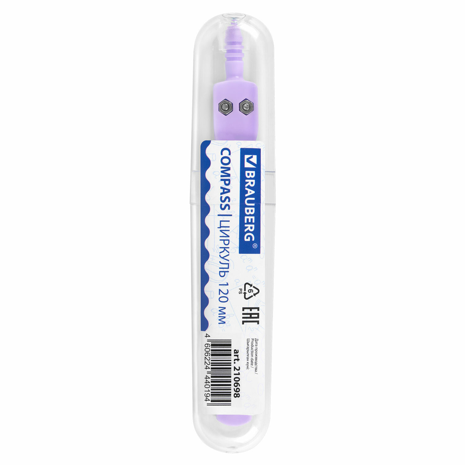 Циркуль BRAUBERG GEOMETRY, 120 мм, пастельно-фиолетовый цвет, защитный колпачок, пластиковый пенал Код товара: 210698 156,42 ₽ Купить Производитель:BRAUBERG Качественный металлический циркуль BRAUBERG GEOMETRY предназначен для учеников младших и средних классов. Инструмент длиной 120 мм имеет несгибаемые штанги и подстраиваемый грифель. Циркуль пастельно-фиолетового цвета, изготовлен из металла, с пластиковым защитным колпачком.Производство: КитайТип товара: циркульСерия: GEOMETRYКоличество предметов: 1 шт.Длина циркуля: 120 ммТип штанги: несгибаемыеСменный грифель: 2 ммЗащитный колпачок для иглы: даКомплектация: циркульЦвет корпуса: пастельный фиолетовыйМатериал: металл, пластикУпаковка: футляр из пластикаВес: 35 грРазмер упаковки: 1.6 × 13 × 2.5 смОбъём: 0.0001 м3Промежуточная упаковка: 12 штТранспортная упаковка: 384 штШтрих-код: 4606224440194 Сертификат-1.jpg Сертификат-2.jpg Сертификат-3.jpg