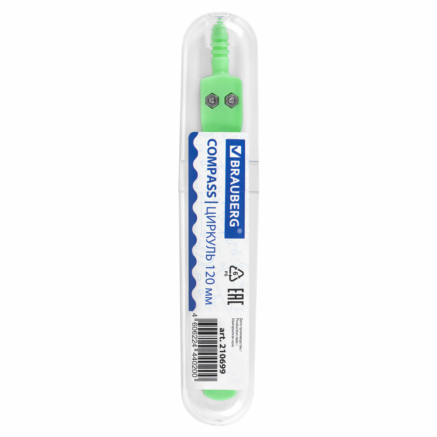 Циркуль BRAUBERG GEOMETRY, 120 мм, пастельно-зеленый цвет, защитный колпачок, пластиковый пенал Код товара: 210699 168,3 ₽ Купить Производитель:BRAUBERG Качественный металлический циркуль BRAUBERG GEOMETRY предназначен для учеников младших и средних классов. Инструмент длиной 120 мм имеет несгибаемые штанги и подстраиваемый грифель. Циркуль пастельно-зеленого цвета, изготовлен из металла, имеет пластиковый защитный колпачок.Производство: КитайТип товара: циркульСерия: GEOMETRYКоличество предметов: 1 шт.Длина циркуля: 120 ммТип штанги: несгибаемыеСменный грифель: 2 ммЗащитный колпачок для иглы: даКомплектация: циркульЦвет корпуса: пастельный зеленыйМатериал: металл, пластикУпаковка: футляр из пластикаВес: 35 грРазмер упаковки: 1.6 × 13 × 2.6 смОбъём: 0.0001 м3Промежуточная упаковка: 12 штТранспортная упаковка: 384 штШтрих-код: 4606224440200 Сертификат-1.jpg Сертификат-2.jpg Сертификат-3.jpg