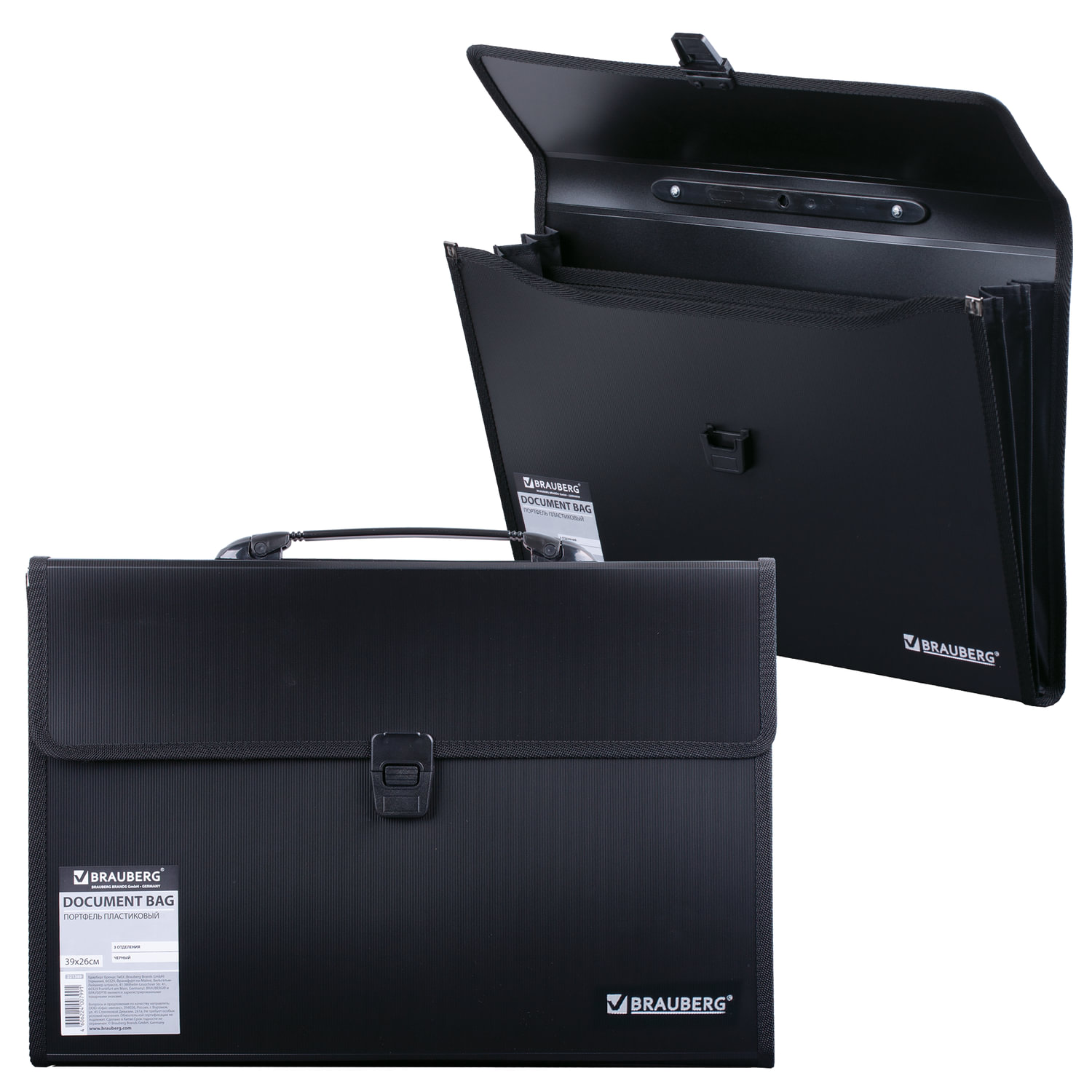 Папка-портфель пластиковая BRAUBERG А4+ (390х260х40 мм), 3 отделения, фактура линейная, черная Код товара: 221389 532,26 ₽ Купить Производитель:BRAUBERG Портфель BRAUBERG предназначен для транспортировки документов, бумаг и различных предметов и широко используется школьниками, студентами, офисными работниками и людьми творческих профессий. Портфель формата А4+ (390х260х40 мм) изготовлен из плотного пластика толщиной 0,7 мм, выполнен в солидном черном цвете с линейной фактурой и имеет 3 отделения. Складная ручка обеспечивает компактность изделия. Портфель застегивается на клапан. Края окантованы тканью с металлическими рейками по краям окантовки, что придает изделию презентабельный вид.Производство: КитайТип товара: портфельФормат: А4+Количество отделений: 3Фактура: линейнаяЗастежка: клапанСерия: Standard +Тип ручки: складнаяТолщина материала: 0.7 ммТканевая окантовка: даМеталлические рейки по краям окантовки: даВысота: 260 ммШирина: 390 ммГлубина: 40 ммМатериал: пластикЦвет: черныйВес: 396 грРазмер упаковки: 3.6 × 38.5 × 27.9 смОбъём: 0.0048 м3Промежуточная упаковка: 10 штТранспортная упаковка: 40 штШтрих-код: 4606224007991 Сертификат-1.jpg Сертификат-2.jpg Сертификат-3.jpg