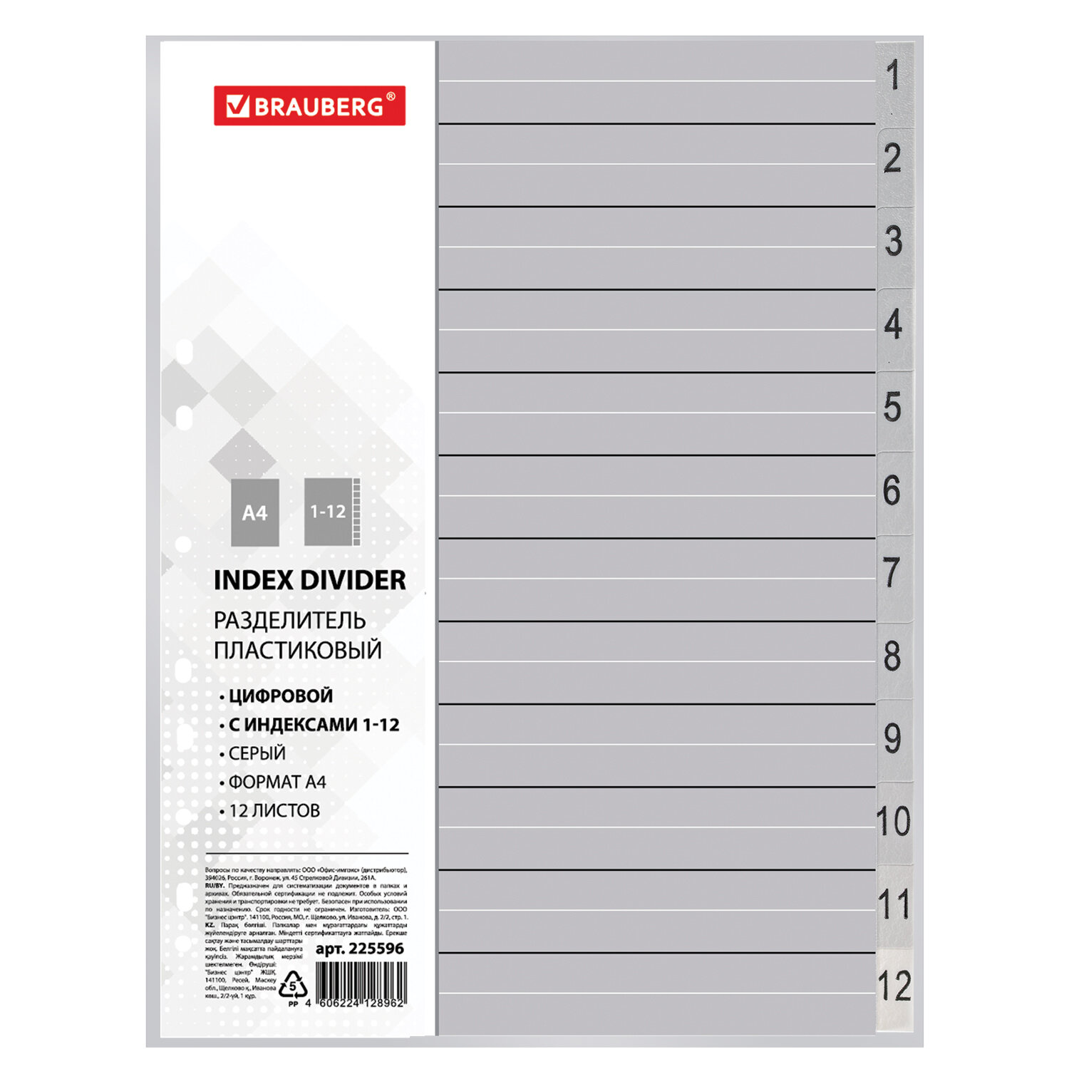 Разделитель пластиковый BRAUBERG, А4, 12 листов, цифровой 1-12, оглавление, серый, РОССИЯ Код товара: 225596 248,5 ₽ Купить Производитель:BRAUBERG Пластиковые разделители BRAUBERG предназначены для систематизации документов внутри папок формата А4. Изготовлены из пластика толщиной 0,12 мм. В комплект входят 12 листов серого цвета, обеспечивающих возможность сортировки документов по цифрам, а также титульный лист для оглавления. Универсальная перфорация позволяет подшивать разделители во все типы папок. Размер - 224х297 мм.Производство: РоссияТип сортировки: цифровойДля папок формата: А4Титульный лист для оглавления: даКоличество в упаковке: 12 шт.Форма: стандартный листМатериал: пластикСерия: Standard Толщина пластика: 0.12 ммУниверсальная перфорация для всех типов папок: даНаличие индексации: даШирина: 224 ммДлина: 297 ммЦвет: серыйВес: 91 грРазмер упаковки: 0.2 × 30.9 × 23.8 смОбъём: 0.0002 м3Промежуточная упаковка: 25 штТранспортная упаковка: 150 штШтрих-код: 4606224128962 Файлы Сертификат-1.jpg Сертификат-2.jpg Сертификат-3.jpg Сертификат-4.jpg Сертификат-5.jpg Сертификат-6.jpg Сертификат-7.jpg Сертификат-8.jpg Сертификат-9.jpg Сертификат-10.jpg Сертификат-11.jpg Сертификат-12.jpg Сертификат-13.jpg Сертификат-14.jpg Сертификат-15.jpg Сертификат-16.jpg Сертификат-17.jpg Сертификат-18.jpg Сертификат-19.jpg Сертификат-20.jpg Сертификат-21.jpg Сертификат-22.jpg Сертификат-23.jpg Сертификат-24.jpg Сертификат-25.jpg Сертификат-26.jpg