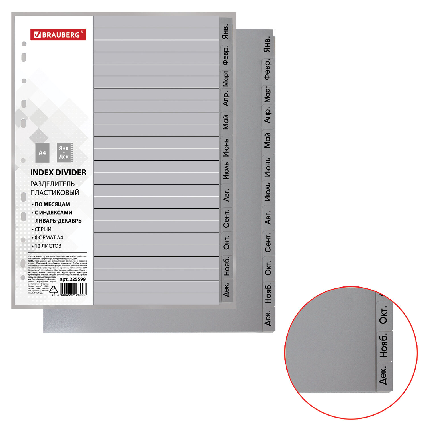 Разделитель пластиковый BRAUBERG, А4, 12 листов, Январь-Декабрь, оглавление, серый, РОССИЯ Код товара: 225599 200 ₽ Купить Производитель:BRAUBERG Пластиковые разделители BRAUBERG предназначены для систематизации документов внутри папок формата А4. Изготовлены из пластика толщиной 0,12 мм. В комплект входят 12 листов серого цвета, обеспечивающих возможность сортировки документов по месяцам, а также титульный лист для оглавления. Универсальная перфорация позволяет подшивать разделители во все типы папок. Размер - 224х297 мм.Производство: РоссияТип сортировки: по месяцамДля папок формата: А4Титульный лист для оглавления: даКоличество в упаковке: 12 шт.Форма: стандартный листМатериал: пластикСерия: Standard Толщина пластика: 0.12 ммУниверсальная перфорация для всех типов папок: даНаличие индексации: даШирина: 224 ммДлина: 297 ммЦвет: серыйВес: 82 грРазмер упаковки: 0.2 × 31.1 × 23.9 смОбъём: 0.0002 м3Промежуточная упаковка: 25 штТранспортная упаковка: 150 штШтрих-код: 4606224128993 Файлы Сертификат-1.jpg Сертификат-2.jpg Сертификат-3.jpg Сертификат-4.jpg Сертификат-5.jpg Сертификат-6.jpg Сертификат-7.jpg Сертификат-8.jpg Сертификат-9.jpg Сертификат-10.jpg Сертификат-11.jpg Сертификат-12.jpg Сертификат-13.jpg Сертификат-14.jpg Сертификат-15.jpg Сертификат-16.jpg Сертификат-17.jpg Сертификат-18.jpg Сертификат-19.jpg Сертификат-20.jpg Сертификат-21.jpg Сертификат-22.jpg Сертификат-23.jpg Сертификат-24.jpg Сертификат-25.jpg Сертификат-26.jpg