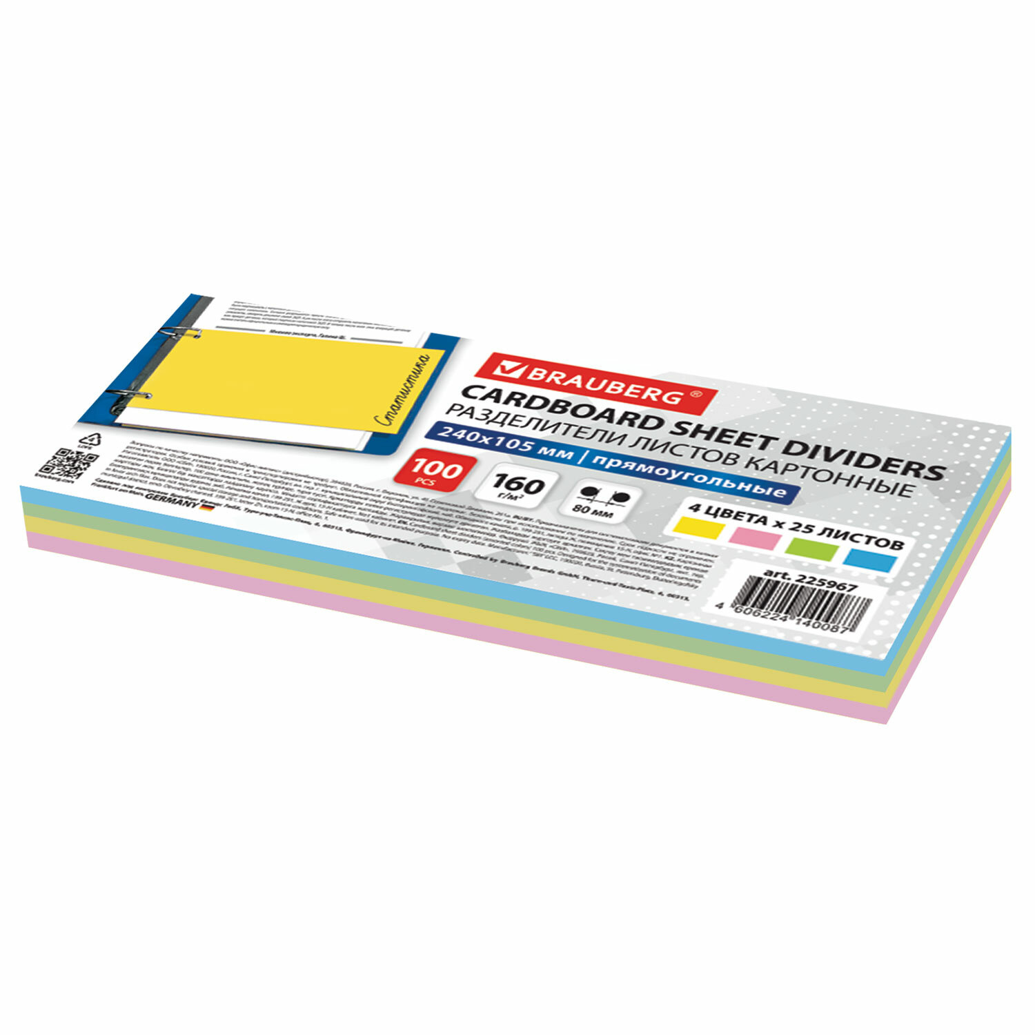 Разделители листов (полосы 240х105 мм) картонные, КОМПЛЕКТ 100 штук, ассорти, BRAUBERG Код товара: 225967 336,6 ₽ Купить Производитель:BRAUBERG Картонные разделители BRAUBERG предназначены для систематизации документов внутри папок. Изготовлены из качественного картона плотностью 160 г/м2. В комплект входят 100 листов размером 240х105 мм синего, красного, зеленого и желтого цвета, обеспечивающих возможность сортировки документов по цветам. Универсальная перфорация позволяет подшивать разделители во все типы папок.Производство: РоссияТип сортировки: по цветамДля папок формата: А4Количество в упаковке: 100 шт.Форма: полосыМатериал: картонСерия: StripesПлотность картона: 160 г/м2Универсальная перфорация для всех типов папок: даШирина: 105 ммДлина: 240 ммЦвет: ассортиВес: 411 грРазмер упаковки: 2 × 24.1 × 10.5 смОбъём: 0.0007 м3Промежуточная упаковка: 40 штТранспортная упаковка: 40 штШтрих-код: 4606224140087 Файлы Сертификат-1.jpg Сертификат-2.jpg Сертификат-3.jpg Сертификат-4.jpg Сертификат-5.jpg Сертификат-6.jpg Сертификат-7.jpg Сертификат-8.jpg Сертификат-9.jpg Сертификат-10.jpg Сертификат-11.jpg Сертификат-12.jpg Сертификат-13.jpg Сертификат-14.jpg Сертификат-15.jpg Сертификат-16.jpg Сертификат-17.jpg Сертификат-18.jpg Сертификат-19.jpg Сертификат-20.jpg Сертификат-21.jpg Сертификат-22.jpg Сертификат-23.jpg Сертификат-24.jpg Сертификат-25.jpg Сертификат-26.jpg