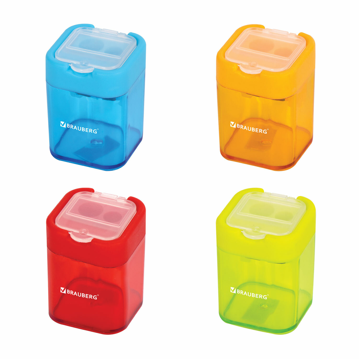 Точилка BRAUBERG "Peak", 2 отверстия для чернографитных карандашей (в том числе утолщенных), с контейнером, пластиковая, ассорти Код товара: 226945 176,06 ₽ Купить Производитель:BRAUBERG Точилка BRAUBERG "Peak" - предмет №1 в паре с карандашом на рабочем столе в офисе, на школьной парте или дома. Эргономичный корпус прямоугольной формы выполнен из пластика ярких цветов ассорти. Точилка оснащена двумя отверстиями для заточки карандашей разного диаметра. Острое стальное лезвие обеспечивает быструю и легкую заточку. Карандаш затачивается аккуратно, а опилки остаются в специальном контейнере. Размер - 50х37х37 мм.Производство: КитайКоличество в комплекте: 1 шт.Материал корпуса: пластикФорма корпуса: прямоугольнаяКоличество отверстий: 2Контейнер для стружки: даСпециальная заточка утолщенных карандашей: даСерия: PeakПодходит для левшей: даЦвет: ассортиВысота: 50 ммШирина: 37 ммГлубина: 37 ммУпаковка : дисплейВес: 24 грРазмер упаковки: 3.7 × 5 × 3.7 смОбъём: 0.0001 м3Промежуточная упаковка: 12 штТранспортная упаковка: 720 штШтрих-код: 4606224172811 Сертификат-1.jpg Сертификат-2.jpg Сертификат-3.jpg