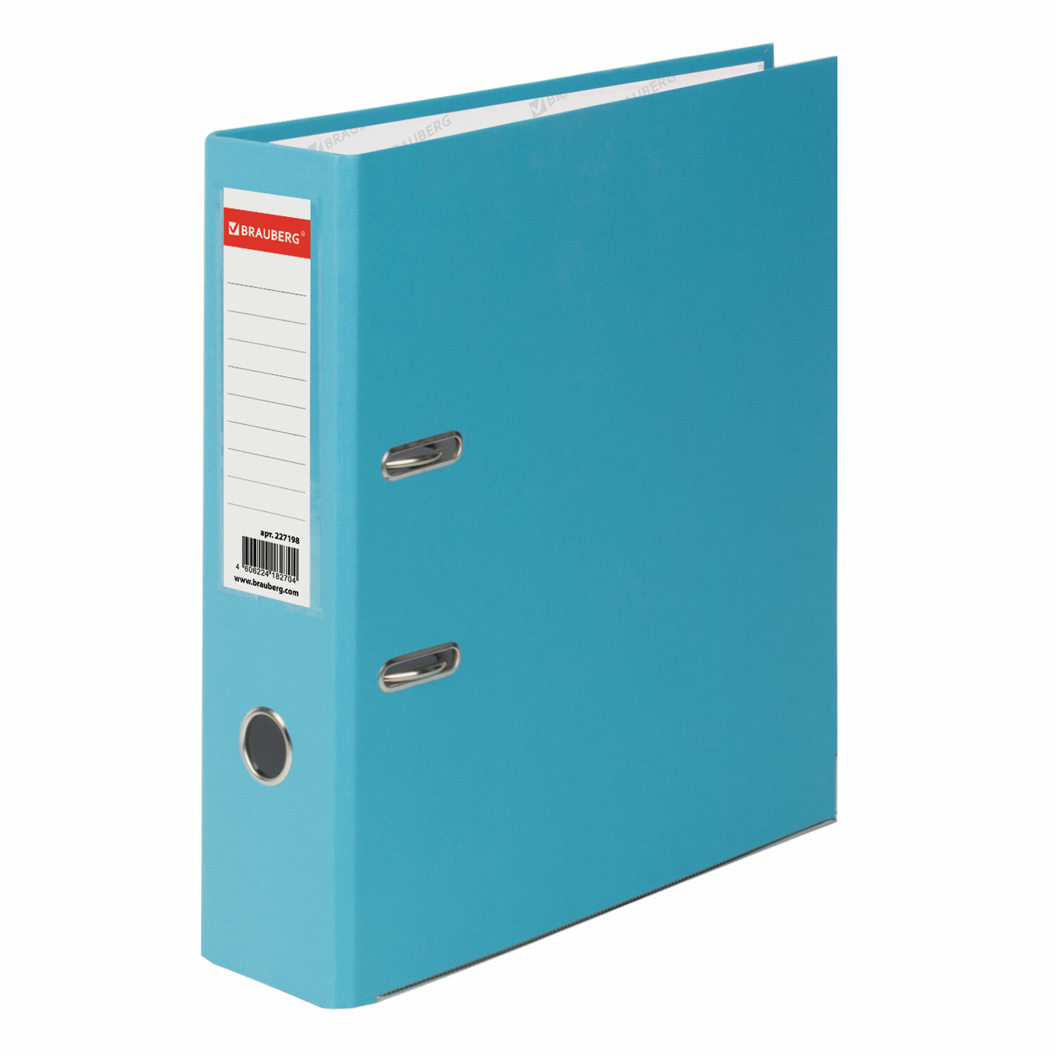 Папка-регистратор BRAUBERG с покрытием из ПВХ, 80 мм, с уголком, бирюзовая (удвоенный срок службы) Код товара: 227198 573,38 ₽ Купить Производитель:BRAUBERG Папка-регистратор BRAUBERG предназначена для хранения, систематизации и архивирования документов. Такие папки используются в работе офисными сотрудниками различных специальностей, направлений и должностей. Папка формата А4 с вертикальной ориентацией изготовлена из качественного износоустойчивого картона с ПВХ покрытием. Благодаря такому плотному покрытию допустима влажная уборка изделия. Ширина корешка в 80 мм позволяет разместить до 600 листов. Нижние края папки защищены металлическими уголками, что увеличивает срок службы в 2 раза. Прорези для колец на внешней крышке позволяют оставаться папке закрытой даже при большом количестве бумаг, а надежный арочный механизм легко справляется с ежедневными нагрузками. Корешок снабжен этикеткой для маркировки содержимого, что позволяет структурировать информацию. Такая папка станет незаменимым помощником для работников с документацией, а яркий бирюзовый цвет папки-регистратора выделит ее в ряду других.Производство: РоссияФормат: А4Ширина корешка: 80 ммМатериал внешнего покрытия: ПВХМатериал внутреннего покрытия: бумагаВместимость: 600 листовМеталлический протектор нижней кромки: даСерия: PVC coatedНаличие кармана на корешке: даЦвет корешка: бирюзовыйЦвет папки: бирюзовыйФормат папки ориентирован: вертикальноДопустима влажная обработка: даВес: 451 грРазмер упаковки: 8.4 × 31.9 × 29.3 смОбъём: 0.0038 м3Промежуточная упаковка: 20 штТранспортная упаковка: 20 штШтрих-код: 4606224182704 Файлы Сертификат-1.jpg Сертификат-2.jpg Сертификат-3.jpg Сертификат-4.jpg Сертификат-5.jpg Сертификат-6.jpg Сертификат-7.jpg Сертификат-8.jpg Сертификат-9.jpg Сертификат-10.jpg Сертификат-11.jpg Сертификат-12.jpg Сертификат-13.jpg Сертификат-14.jpg Сертификат-15.jpg Сертификат-16.jpg Сертификат-17.jpg Сертификат-18.jpg Сертификат-19.jpg Сертификат-20.jpg Сертификат-21.jpg Сертификат-22.jpg Сертификат-23.jpg Сертификат-24.jpg Сертификат-25.jpg Сертификат-26.jpg