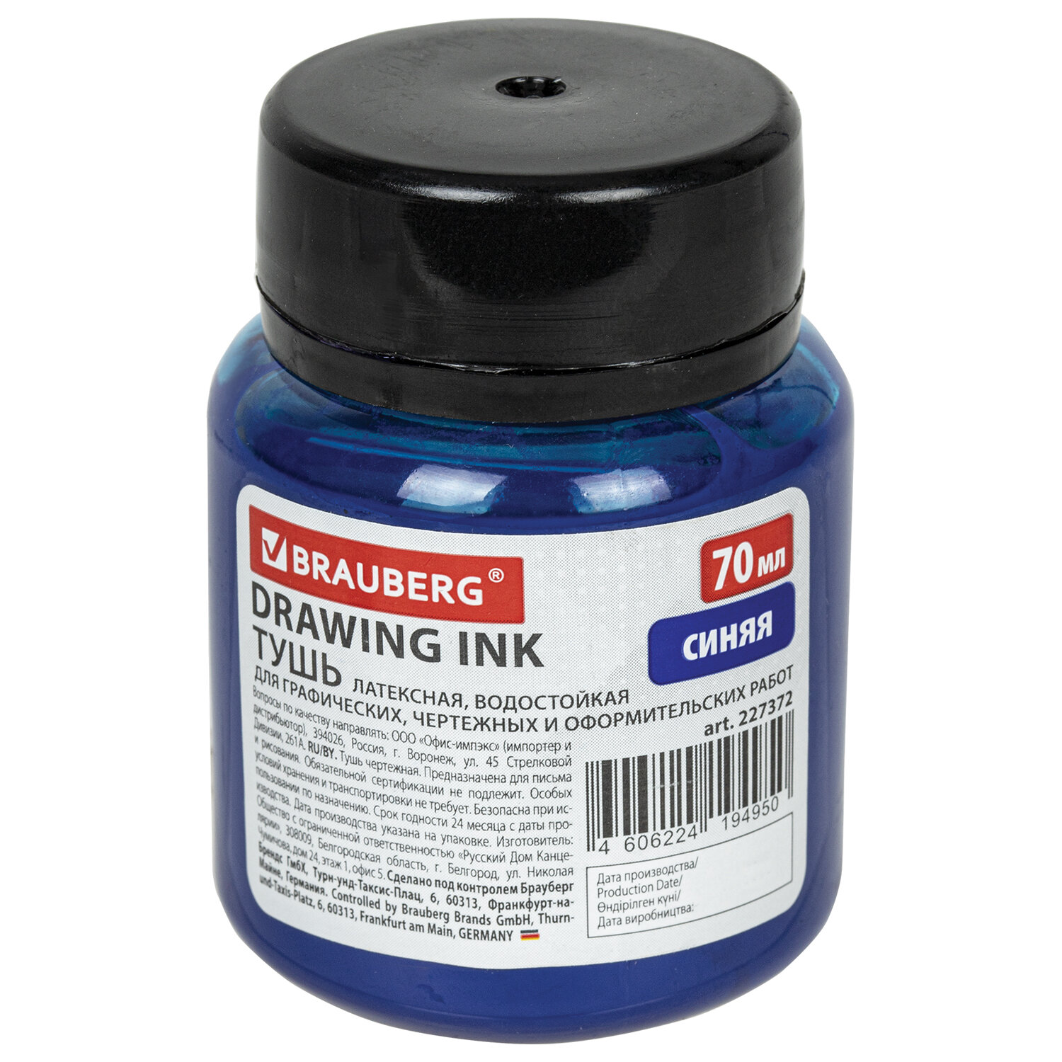 Тушь чертежная BRAUBERG, 70 мл, синяя, водостойкая, латексная (черчение, графика, оформление) Код товара: 227372 121,76 ₽ Купить Производитель:BRAUBERG Водостойкая тушь BRAUBERG на латексной основе предназначена для графических, чертежных и оформительских работ. Особенно хороша для использования в качестве контура под акварель. Не смывается после высыхания, имеет густой цвет и легко сходит с пера или рейсфедера. Широкое горлышко и достаточный объем флакона в 70 мл позволяют легко обмакнуть перо или рейсфедер. Цвет - синий.Производство: РоссияЦвет: синийОбъем: 70 млВодостойкая: даКоличество в упаковке: 1 шт.Основа: латекснаяМатериал флакона: полипропиленУпаковка: пластиковый флаконСрок годности: 24 месВес: 89 грРазмер упаковки: 7 × 4.8 × 4.8 смОбъём: 0.0002 м3Промежуточная упаковка: 60 штТранспортная упаковка: 60 штШтрих-код: 4606224194950 Файлы Приложение-1.pdf Приложение-2.pdf Сертификат-1.jpg Сертификат-2.jpg Сертификат-3.jpg Сертификат-4.jpg Сертификат-5.jpg Сертификат-6.jpg Сертификат-7.jpg Сертификат-8.jpg Сертификат-9.jpg Сертификат-10.jpg Сертификат-11.jpg Сертификат-12.jpg Сертификат-13.jpg Сертификат-14.jpg Сертификат-15.jpg Сертификат-16.jpg Сертификат-17.jpg Сертификат-18.jpg Сертификат-19.jpg Сертификат-20.jpg Сертификат-21.jpg Сертификат-22.jpg Сертификат-23.jpg Сертификат-24.jpg Сертификат-25.jpg Сертификат-26.jpg
