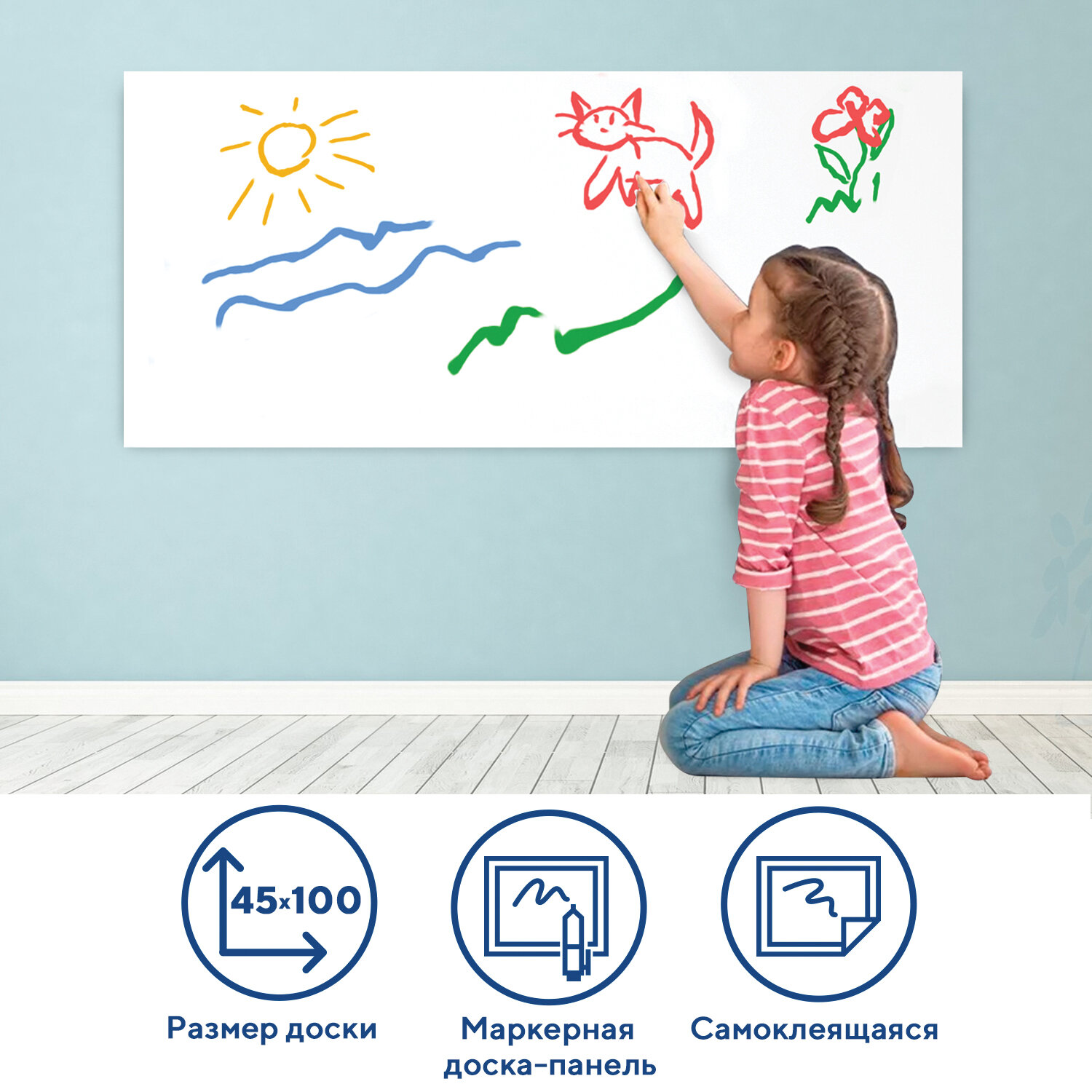Доска-панель маркерная самоклеящаяся, белая в рулоне (45х100 см), BRAUBERG Код товара: 236470 287,1 ₽ Купить Производитель:BRAUBERG Самоклеящаяся маркерная доска-панель BRAUBERG предназначена для письма и рисования специальными маркерами для белой доски. Представляет собой рулон размером 45х100 см. Легко клеится на гладкую, ровную поверхность. Не оставляет следов при переклейке. При желании можно разрезать рулон на разнообразные фигуры. Инструкция по наклеиванию размещена на упаковке.Производство: КитайТип товара: панельРабочая поверхность: немагнитнаяВысота доски: 45 смШирина доски: 100 смТип крепления: самоклеящаясяРазметка: нетМатериал рамы: нетЦвет рамки: нетЦвет рабочей поверхности: белыйВес: 0.151 кгРазмер упаковки: 3.7 × 45.9 × 3.8 смОбъём: 0.0008 м3Промежуточная упаковка: 48 штТранспортная упаковка: 48 штШтрих-код: 4606224157108 Файлы Сертификат-1.jpg Сертификат-2.jpg Сертификат-3.jpg Сертификат-4.jpg Сертификат-5.jpg Сертификат-6.jpg Сертификат-7.jpg Сертификат-8.jpg Сертификат-9.jpg Сертификат-10.jpg Сертификат-11.jpg Сертификат-12.jpg Сертификат-13.jpg Сертификат-14.jpg Сертификат-15.jpg Сертификат-16.jpg Сертификат-17.jpg Сертификат-18.jpg Сертификат-19.jpg Сертификат-20.jpg Сертификат-21.jpg Сертификат-22.jpg Сертификат-23.jpg Сертификат-24.jpg Сертификат-25.jpg Сертификат-26.jpg