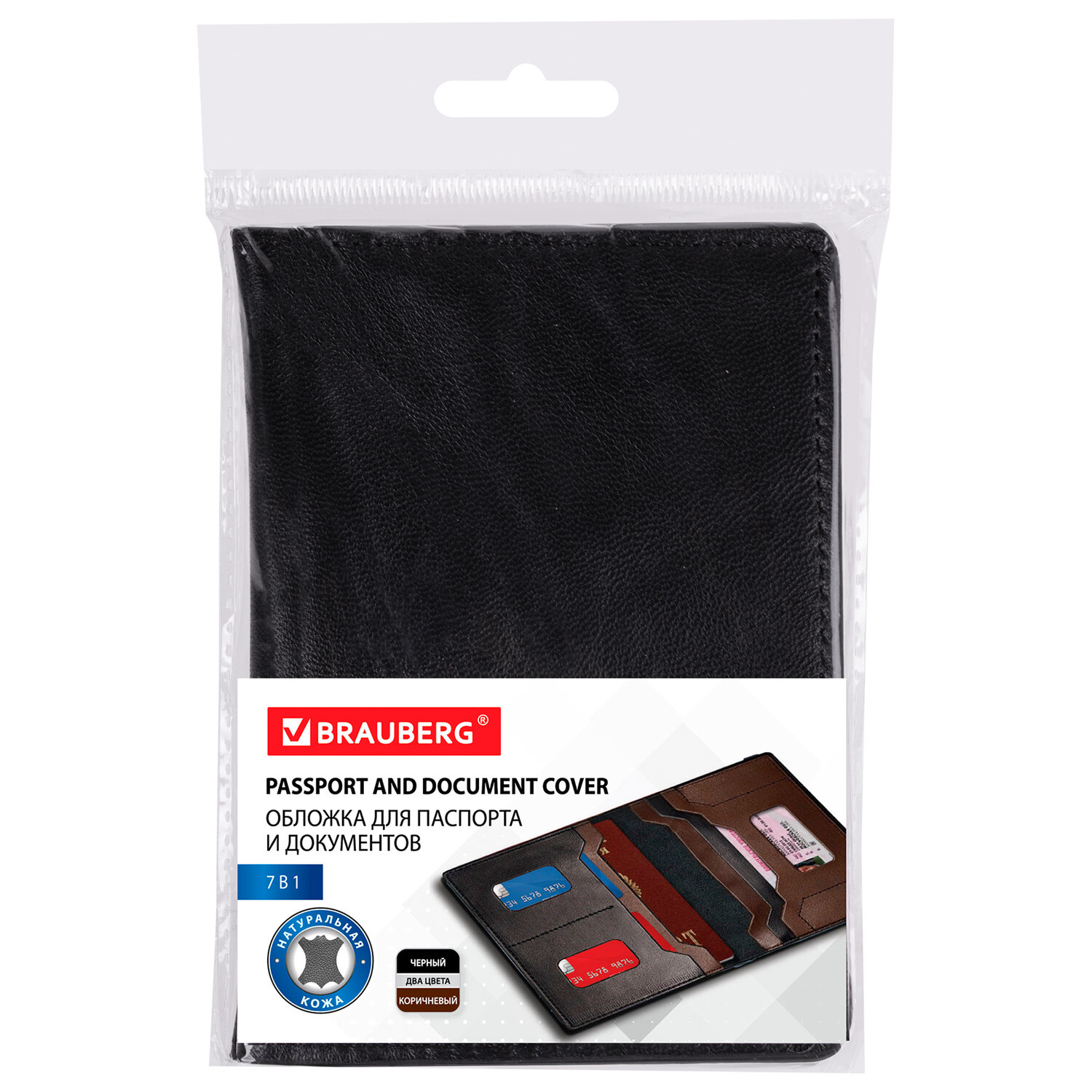 Обложка для паспорта и документов 7 в 1 натуральная кожа, без тиснения, черная, BRAUBERG Код товара: 238196 649,91 ₽ Купить Производитель:BRAUBERG Обложка для паспорта BRAUBERG станет прекрасным подарком, который защитит документ от изнашивания и загрязнения и придаст ему респектабельный вид. Модель выполнена из натуральной кожи насыщенного чёрного и тёмно-коричневого цветов. На внутреннем развороте расположены кожаные карманы, которые вмещают не менее 7 документов и предназначены: для паспорта, для водительских прав нового образца, для документов (СНИЛС, СТС и др.), а также кармашки для карт. Благодаря большому количеству карманов для документов и компактному размеру 105х140 мм обложку удобно всегда носить с собой. Упакована в пакет с европодвесом. Данный товар обладает высоким качеством по приемлемой цене.Производство: РоссияМатериал: натуральная кожаСерия: нетТиснение: нетРасположение: вертикальноеКоличество карманов из кожи: 7 шт.Длина: 140 ммШирина: 105 ммЦвет: черный/коричневыйВес: 50 грРазмер упаковки: 0.8 × 14.5 × 11.3 смОбъём: 0.0002 м3Промежуточная упаковка: 160 штТранспортная упаковка: 160 штШтрих-код: 4606224394039 Сертификат-1.jpg Сертификат-2.jpg Сертификат-3.jpg