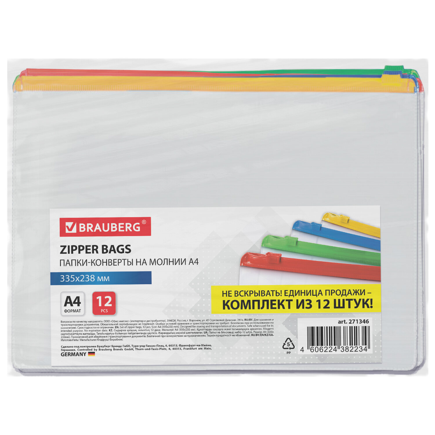 Папка-конверт СУПЕР КОМПЛЕКТ на молнии, 12 штук, А4 (335х238 мм), BRAUBERG Код товара: 271346 379,49 ₽ Купить Производитель:BRAUBERG Комплект папок-конвертов с застежкой-зиплок BRAUBERG (12 шт.) идеально подойдет для хранения и транспортировки бумаг и документов. Папки-конверты изготовлены из прозрачного пластика толщиной 0,12 мм с гладкой фактурой. Формат А4 (335х238 мм). Герметичная застежка-зиплок защищает документы от механических повреждений, а также пыли и влаги. Цвет молнии - ассорти (3 синих, 3 красных, 3 желтых, 3 зеленых). Пользуются большим спросом среди школьников, студентов и офисных сотрудников; помогают организовать хранение документов дома. Комплект из 12 штук позволяет упорядочить бумаги и документы, распределить их по категориям.Производство: КитайФормат: A4Серия: PVC (Plastic)Фактура: гладьКоличество отделений: 1 шт.Застежка: зиплокЦвет: прозрачныйЦвет молнии: ассортиВысота: 238 ммШирина: 335 ммТолщина пластика: 120 мкмМатериал: ПВХВес: 325 грРазмер упаковки: 0.7 × 33.8 × 25.5 смОбъём: 0.0008 м3Промежуточная упаковка: 25 штТранспортная упаковка: 50 штШтрих-код: 4606224382234 Файлы Сертификат-1.jpg Сертификат-2.jpg Сертификат-3.jpg Сертификат-4.jpg Сертификат-5.jpg Сертификат-6.jpg Сертификат-7.jpg Сертификат-8.jpg Сертификат-9.jpg Сертификат-10.jpg Сертификат-11.jpg Сертификат-12.jpg Сертификат-13.jpg Сертификат-14.jpg Сертификат-15.jpg Сертификат-16.jpg Сертификат-17.jpg Сертификат-18.jpg Сертификат-19.jpg Сертификат-20.jpg Сертификат-21.jpg Сертификат-22.jpg Сертификат-23.jpg Сертификат-24.jpg Сертификат-25.jpg Сертификат-26.jpg