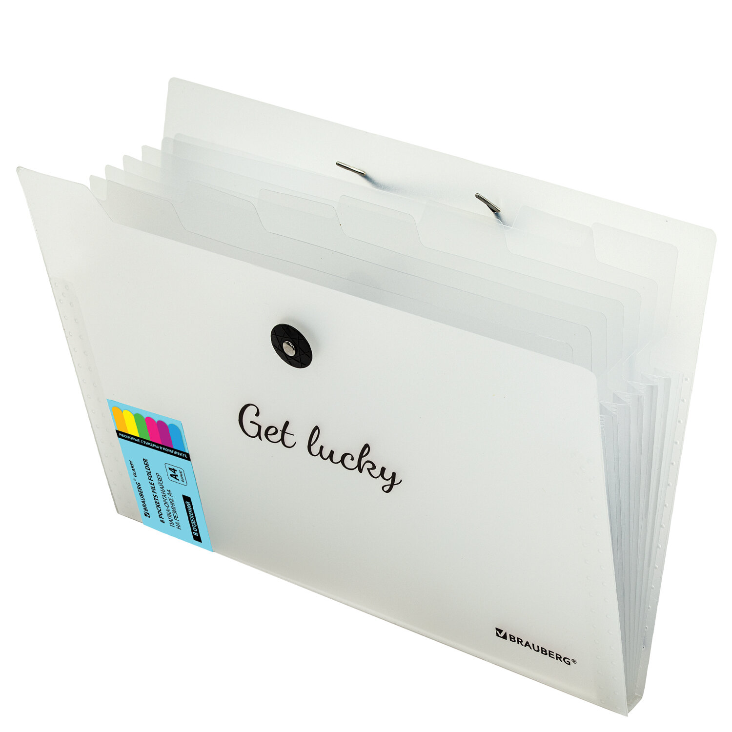 Папка-органайзер на резинке 8 отделений, BRAUBERG "Glassy", А4, прозрачная Код товара: 271928 234,41 ₽ Купить Производитель:BRAUBERG Папка-органайзер BRAUBERG "Glassy" предназначена для хранения, транспортировки и систематизации документов и ценных бумаг. Благодаря своей компактности и вместительности незаменима в учебе, работе, деловых поездках, командировках и путешествиях. Папка-органайзер изготовлена из качественного прозрачного пластика толщиной 0,5 мм с фактурой 'песок'. Имеет 8 отделений с ярлыками на разделителях и неоновыми стикерами (в комплекте), что существенно упрощает процесс поиска нужного документа и позволяет структурировать информацию. Удобный и надежный замок-резинка дает возможность быстро открывать и закрывать папку, не позволяя содержимому выпасть, и защищает от влаги, пыли и механических повреждений. Органайзер отлично подойдет для хранения паспортов, СНИЛС, свидетельств о рождении, дипломов, ИНН, офисных документов, школьных тетрадей, рисунков, тетрадей для нот, курсовых работ и многого другого.Производство: КитайФормат: А4Серия: GLASSYКоличество отделений: 8 шт.Фактура: песокЗастежка: резинкаКоличество карманов: 0 шт.Толщина материала: 0.5 ммИндексные ярлычки: даВысота: 240 ммШирина: 330 ммГлубина: 17 ммМатериал: полипропиленЦвет: прозрачныйВес: 159 грРазмер упаковки: 1.8 × 33 × 24.8 смОбъём: 0.001 м3Промежуточная упаковка: 24 штТранспортная упаковка: 24 штШтрих-код: 4606224409092 Файлы Сертификат-1.jpg Сертификат-2.jpg Сертификат-3.jpg Сертификат-4.jpg Сертификат-5.jpg Сертификат-6.jpg Сертификат-7.jpg Сертификат-8.jpg Сертификат-9.jpg Сертификат-10.jpg Сертификат-11.jpg Сертификат-12.jpg Сертификат-13.jpg Сертификат-14.jpg Сертификат-15.jpg Сертификат-16.jpg Сертификат-17.jpg Сертификат-18.jpg Сертификат-19.jpg Сертификат-20.jpg Сертификат-21.jpg Сертификат-22.jpg Сертификат-23.jpg Сертификат-24.jpg Сертификат-25.jpg Сертификат-26.jpg