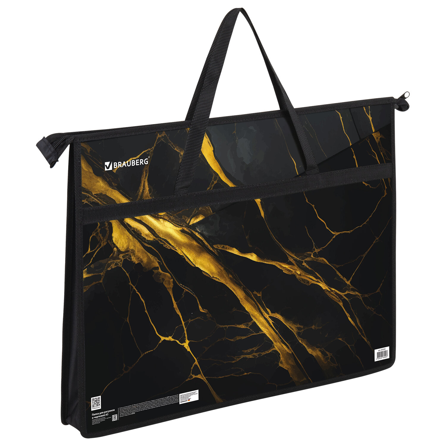Папка для рисунков и чертежей с ручками BRAUBERG А3, пластик, молния сверху, "Black&gold marble" Код товара: 272232 393,03 ₽ Купить Производитель:BRAUBERG Папка BRAUBERG "Black & gold marble" предназначена для хранения чертежей, рисунков и других художественных изображений. Практичная папка на молнии с ручками защитит чертежи, рисунки и другие художественные изображения формата А3 от смятия и повреждений. Изготовлена из износостойкого пластика, боковины выполнены из прочного полиэстера. Яркая и чёткая печать дизайна нанесена с двух сторон. Размер папки – 340х465 мм, ширина – 50 мм. Широкий формат позволяет разместить внутри канцелярские принадлежности для творчества. Папка оснащена удобной застёжкой-молнией сверху. Прочные ручки, изготовленные из тесьмы и надёжно прикреплённые к папке, обеспечивают комфортную переноску даже при большой нагрузке. Индивидуальная упаковка (полиэтиленовый пакет с европодвесом) защищает товар при транспортировке и позволяет удобно разместить его для покупателей.Производство: РоссияФормат: А3Серия: DESIGNЗастежка: молнияМатериал: пластикКоличество отделений: 1Наличие ручки: даДизайн: Black & gold marbleЦвет: черныйВысота: 340 ммШирина: 465 ммГлубина: 50 ммУпаковка: пакет с европодвесомВес: 249 грРазмер упаковки: 1.8 × 50.4 × 35.2 смОбъём: 0.0015 м3Промежуточная упаковка: 25 штТранспортная упаковка: 25 штШтрих-код: 4606224430997 Файлы Сертификат-1.jpg Сертификат-2.jpg Сертификат-3.jpg Сертификат-4.jpg