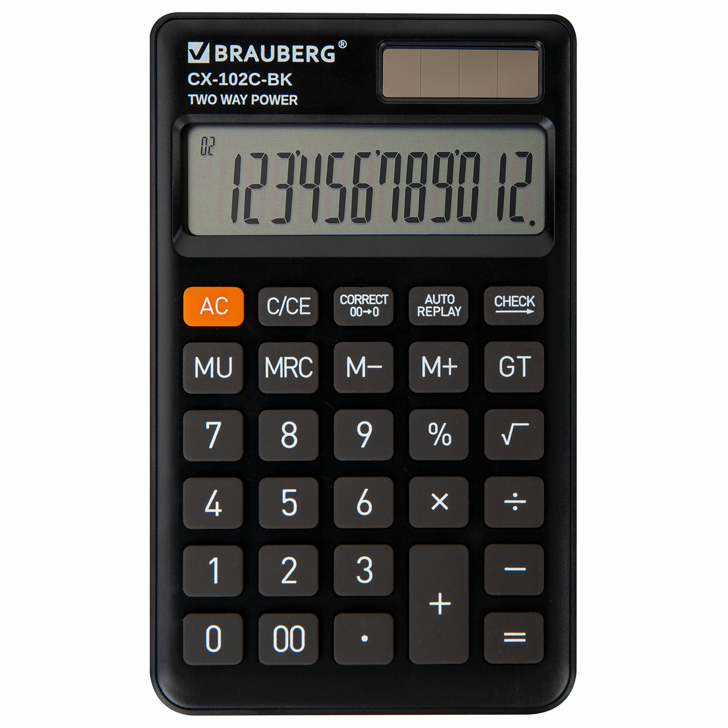 Калькулятор карманный BRAUBERG CX-102C-BK (76x126 мм), 12 разрядов, двойное питание, ЧЕРНЫЙ Код товара: 272647 361,19 ₽ Купить Производитель:BRAUBERG Карманный калькулятор BRAUBERG CX-102C-BK – компактный и надежный помощник в работе и учебе. Его удобно использовать в офисе, школе и в быту. Калькулятор производит все основные арифметические действия, вычисление с памятью, расчет наценки, вычисление с процентами, возведение в степень и извлечение квадратного корня. Дополнительно оснащен режимами автоматического просмотра операций, общего суммирования, коррекции. Вводимые данные и результаты вычислений хорошо видно на контрастном дисплее. Калькулятор имеет увеличенное число разрядов. Калькулятор оборудован встроенным аккумулятором и солнечной батареей, что позволяет долгие годы производить всевозможные расчеты, оборудован функцией автоматического отключения (через 8-10 минут бездействия), что позволяет максимально продлить срок службы без замены батареи. Размер – 126x76 мм. Гарантия – 10 лет.Производство: КитайРазрядность дисплея: 12Серия: CX-102CТип питания: 1 батарейка LR54 (LR1130/AG10), солнечный элементКонструктивные особенности: нетЦвет панели: черныйИсполнение: карманныйМатериал клавиш: пластикДлина корпуса: 126 ммШирина корпуса: 76 ммТолщина корпуса: 7.5 ммВес: 55.5 гФункционал: автоматический просмотр операций (Auto replay), вычисление наценки (MU), общее суммирование (GT), просмотр и корректировка (Check)Упаковка: картонная коробка с европодвесомРазмер упаковки: 1.5 × 14.8 × 8 смОбъём: 0.0003 м3Промежуточная упаковка: 40 штТранспортная упаковка: 160 штШтрих-код: 4606224435640 Сертификат-1.jpg Сертификат-2.jpg Сертификат-3.jpg