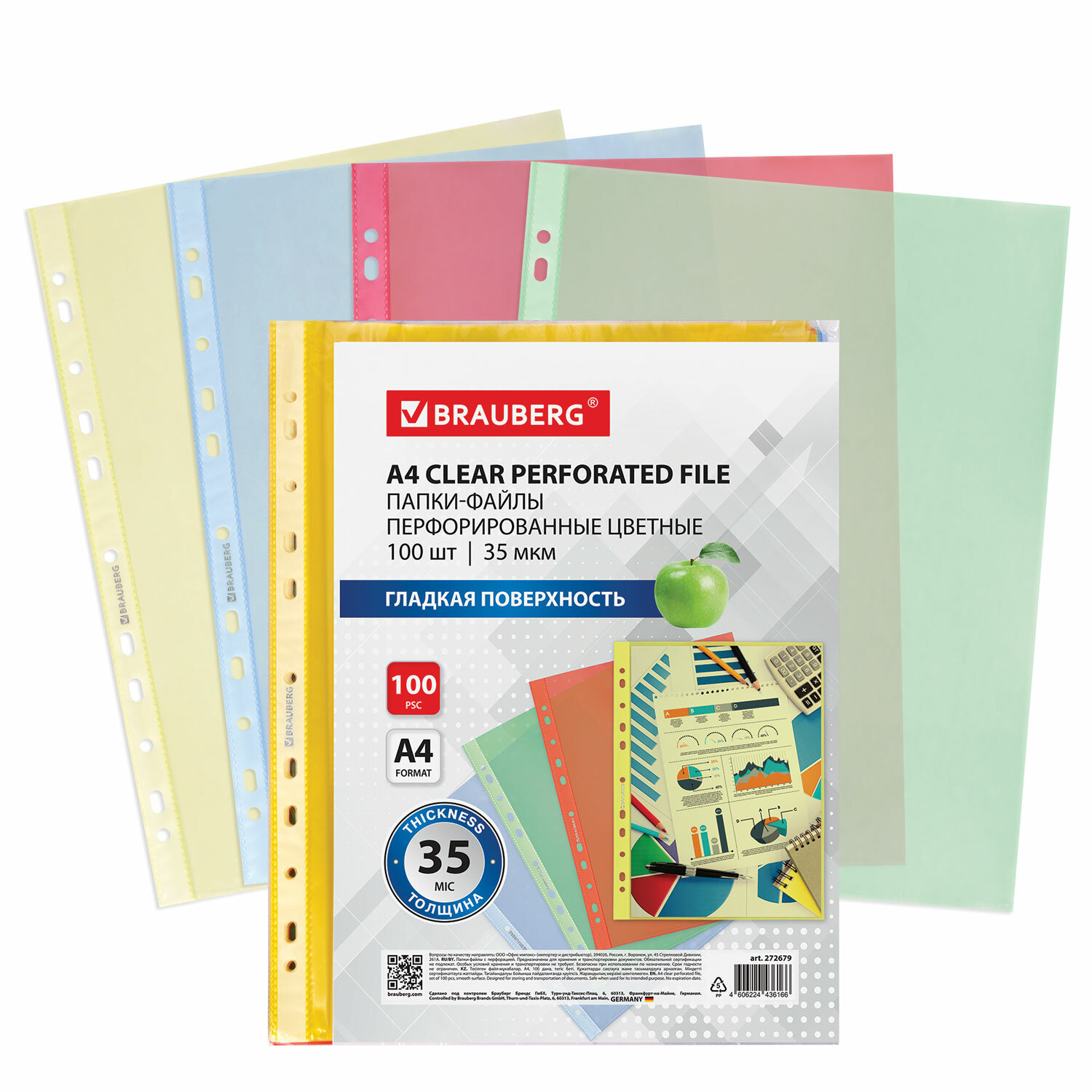 Папки-файлы перфорированные ЦВЕТНЫЕ ассорти А4 BRAUBERG, комплект 100 шт., гладкие, 35 мкм, 272679 Код товара: 272679 351,08 ₽ Купить Производитель:BRAUBERG Цветные папки-файлы BRAUBERG – идеальное решение для упорядочивания документов. Они подходят для папок с любым кольцевым механизмом или скоросшивателем. Папки-файлы формата А4 с вертикальной ориентацией имеют универсальную перфорацию и отличаются цветной поверхностью, что упрощает систематизацию документов по цветам. Яркие и практичные перфопапки идеально подходят для хранения бумаг, помогают упорядочить документы и надежно защищают их в течение длительного срока. Файлы изготовлены из прочной пленки толщиной 35 мкм. В упаковке 100 перфопапок, 4 цвета: желтый, красный, синий, зеленый.Производство: КитайФормат: А4Количество в комплекте: 100 шт.Толщина пленки: 35 мкмОриентация: вертикальнаяФактура: гладкаяСерия: ColorЦвет: ассортиВес: 467 грРазмер упаковки: 1.6 × 30.9 × 25 смОбъём: 0.0009 м3Промежуточная упаковка: 30 штТранспортная упаковка: 30 штШтрих-код: 4606224436166 Файлы Сертификат-1.jpg Сертификат-2.jpg Сертификат-3.jpg Сертификат-4.jpg Сертификат-5.jpg Сертификат-6.jpg Сертификат-7.jpg Сертификат-8.jpg Сертификат-9.jpg Сертификат-10.jpg Сертификат-11.jpg Сертификат-12.jpg Сертификат-13.jpg Сертификат-14.jpg Сертификат-15.jpg Сертификат-16.jpg Сертификат-17.jpg Сертификат-18.jpg Сертификат-19.jpg Сертификат-20.jpg Сертификат-21.jpg Сертификат-22.jpg Сертификат-23.jpg Сертификат-24.jpg Сертификат-25.jpg Сертификат-26.jpg