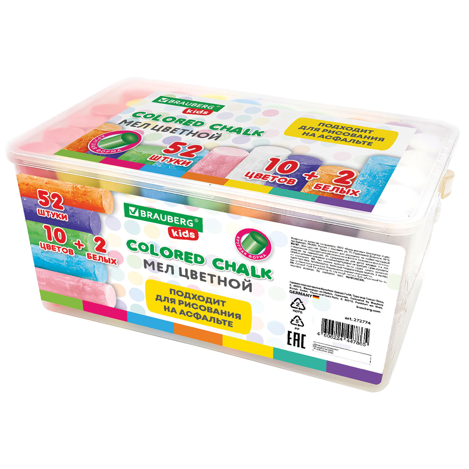 Мел в ведерке для рисования на асфальте 52 штуки, цветной круглый, BRAUBERG KIDS Код товара: 272774 502,92 ₽ Купить Производитель:BRAUBERG Цветной мел BRAUBERG KIDS подходит для рисования на асфальте и любой шероховатой поверхности. Невероятно большой набор из 52 мелков! В набор входят два белых мелка, а также по пять мелков десяти разных цветов: красный, желтый, зеленый, светло-зеленый, оранжевый, голубой, светло-голубой, коричневый, розовый, фиолетовый. Благодаря круглой утолщенной форме мел удобно ложится в руку. Изготовлен из высококачественного природного сырья, нетоксичен. Легко смывается с рук. Мел упакован в пластиковый контейнер – идеально, чтобы хранить мел или брать его с собой.Производство: КитайЦвет: ассортиНазначение: для асфальтаКоличество в упаковке: 52 шт.Количество цветов: 11Форма корпуса: круглаяСерия: KidsДлина: 100 ммДиаметр: 22 ммТвердость: средней твердостиУпаковка: пластиковое ведроВес: 1,74 кгРазмер упаковки: 11.4 × 23.4 × 13.8 смОбъём: 0.0047 м3Промежуточная упаковка: 12 штТранспортная упаковка: 12 штШтрих-код: 4606224447865 Сертификат-1.jpg Сертификат-2.jpg Сертификат-3.jpg