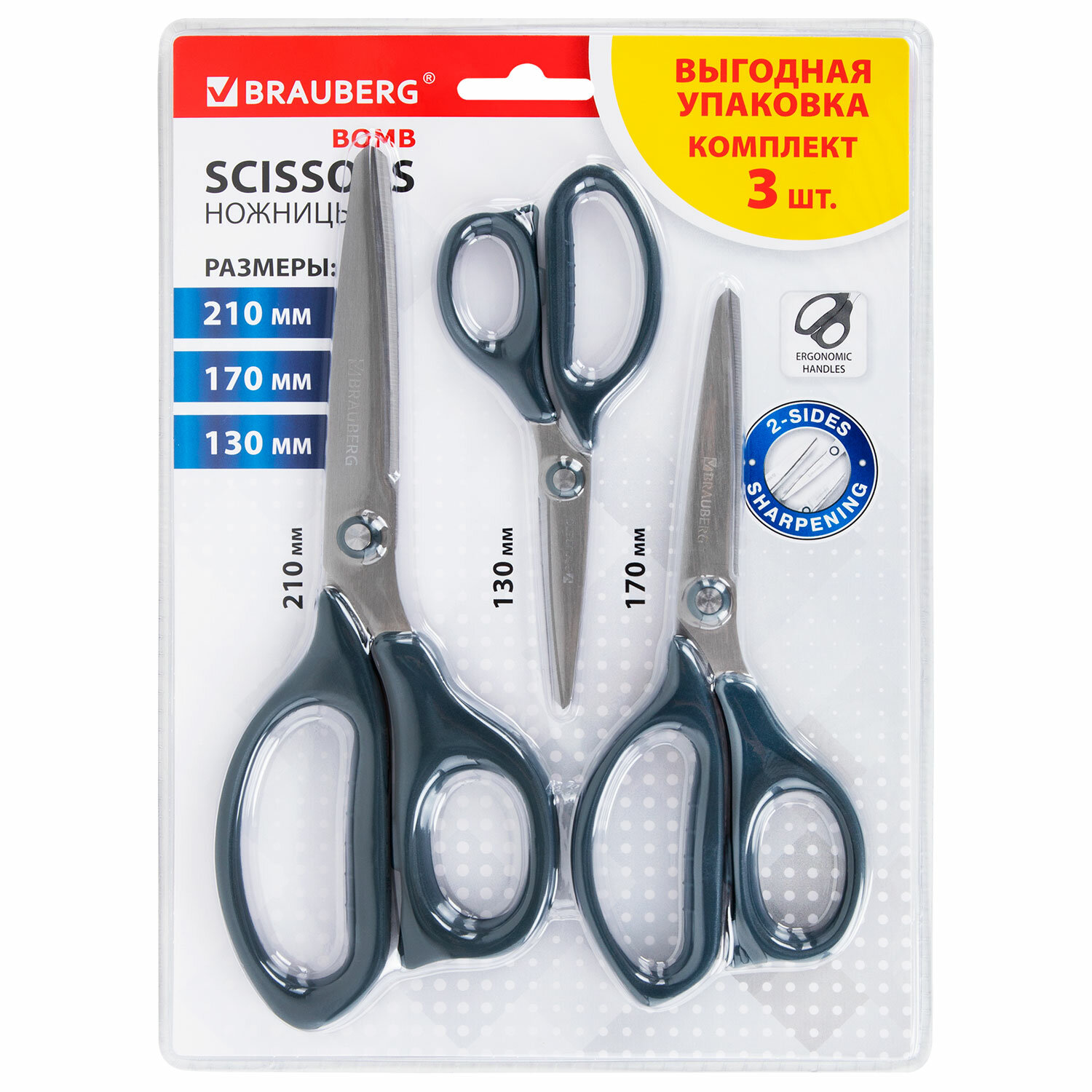 Ножницы BRAUBERG "BOMB" 3 шт. (130, 170, 210 мм), темно-серые ручки, ВЫГОДНАЯ УПАКОВКА, 272980 Код товара: 272980 343,53 ₽ Купить Производитель:BRAUBERG Набор универсальных ножниц BRAUBERG. Эти ножницы идеально подходят для резки бумаги, картона и других материалов, что делает их незаменимыми как в офисе, так и дома. Лезвия ножниц изготовлены из высококачественной нержавеющей стали, что обеспечивает им высокую износостойкость. Благодаря двухсторонней заточке лезвия остаются острыми даже после интенсивной эксплуатации, сохраняя свои режущие свойства. Эргономичные пластиковые ручки обеспечивают удобный захват, что делает процесс резки комфортным. Длина ножниц составляет 210 мм, 130 мм и 170 мм.Производство: КитайДлина: 210 ммТип ножниц: для правшиЗаточка лезвий: двусторонняяЭргономичная форма ручек: даФорма лезвий: закруглённыеДлина лезвий: 100 ммСерия: BOMBМатериал лезвия: нержавеющая стальМатериал ручек: пластикЦвет ручек: графитовыйУпаковка: блистер с европодвесомВес: 198 грРазмер упаковки: 1.5 × 25.4 × 18.2 смОбъём: 0.0009 м3Промежуточная упаковка: 12 штТранспортная упаковка: 48 штШтрих-код: 4606224459677 Файлы Сертификат-1.jpg Сертификат-2.jpg Сертификат-3.jpg Сертификат-4.jpg Сертификат-5.jpg Сертификат-6.jpg Сертификат-7.jpg Сертификат-8.jpg Сертификат-9.jpg Сертификат-10.jpg Сертификат-11.jpg Сертификат-12.jpg Сертификат-13.jpg Сертификат-14.jpg Сертификат-15.jpg Сертификат-16.jpg Сертификат-17.jpg Сертификат-18.jpg Сертификат-19.jpg Сертификат-20.jpg Сертификат-21.jpg Сертификат-22.jpg Сертификат-23.jpg Сертификат-24.jpg Сертификат-25.jpg Сертификат-26.jpg