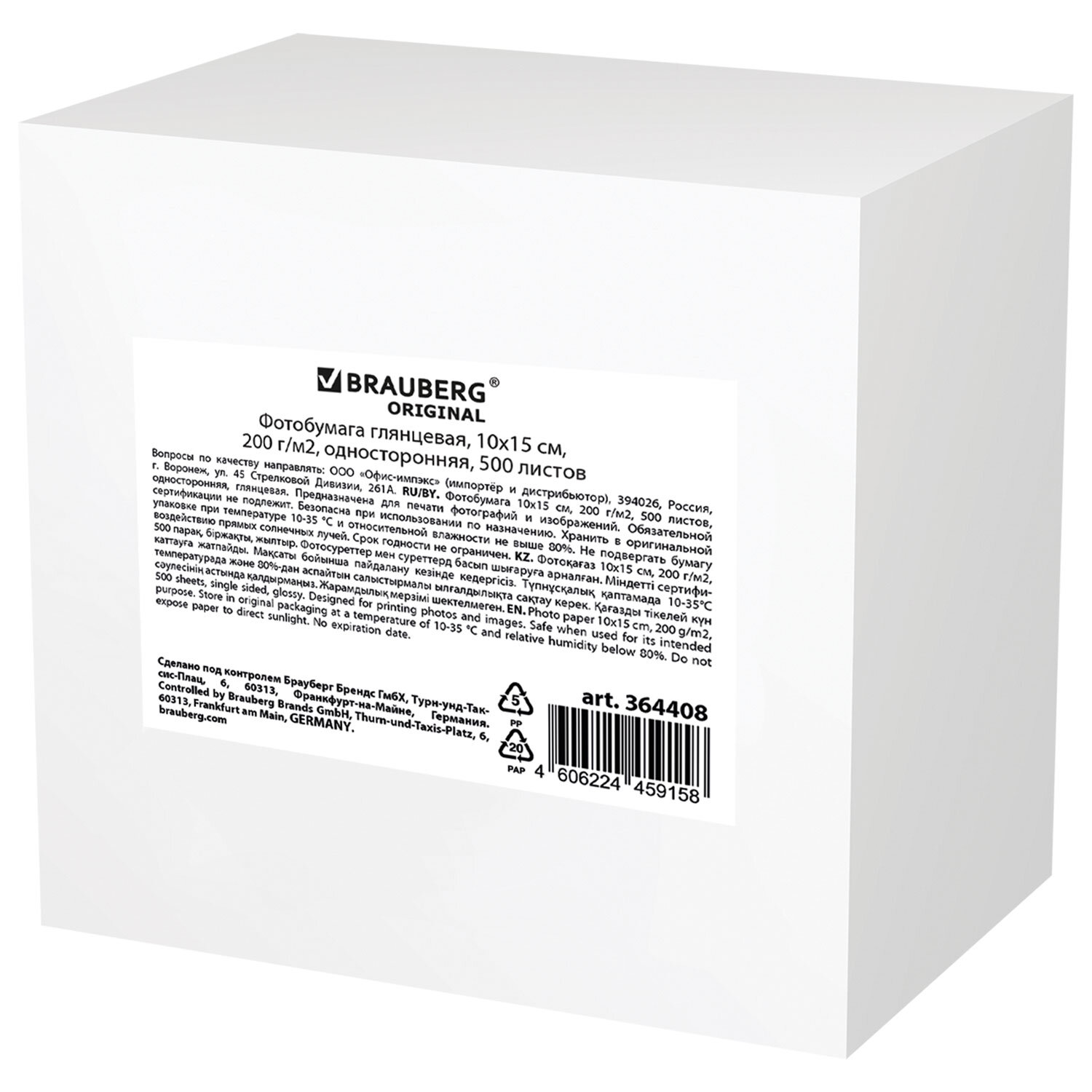 Фотобумага глянцевая, 10х15 см, 200 г/м2, односторонняя, 500 листов, BRAUBERG ORIGINAL Код товара: 364408 795,46 ₽ Купить Производитель:BRAUBERG Глянцевая односторонняя фотобумага BRAUBERG подходит для всех типов струйных принтеров. Незаменима для печати ярких фотореалистичных изображений. Передает яркие, насыщенные цвета со множеством оттенков. Имеет формат 10х15 см и плотность 200 г/м2, что исключает просвечивание изображения. Гладкая поверхность обеспечивает превосходное качество, а особый состав – идеальную цветопередачу. Печать возможна только водорастворимыми чернилами. Поставляется по 500 листов в картонной упаковке.Производство: КитайФормат: 10х15Тип поверхности: глянцеваяПлотность: 200 г/м2Серия: ORIGINAL BOXТехнология печати: для струйной печатиКоличество листов в упаковке: 500 шт.Вес: 1,63 кгРазмер упаковки: 10.7 × 15.6 × 13.8 смОбъём: 0.003 м3Промежуточная упаковка: 8 штТранспортная упаковка: 8 штШтрих-код: 4606224459158 Файлы Сертификат-1.jpg Сертификат-2.jpg Сертификат-3.jpg Сертификат-4.jpg Сертификат-5.jpg Сертификат-6.jpg Сертификат-7.jpg Сертификат-8.jpg Сертификат-9.jpg Сертификат-10.jpg Сертификат-11.jpg Сертификат-12.jpg Сертификат-13.jpg Сертификат-14.jpg Сертификат-15.jpg Сертификат-16.jpg Сертификат-17.jpg Сертификат-18.jpg Сертификат-19.jpg Сертификат-20.jpg Сертификат-21.jpg Сертификат-22.jpg Сертификат-23.jpg Сертификат-24.jpg Сертификат-25.jpg Сертификат-26.jpg