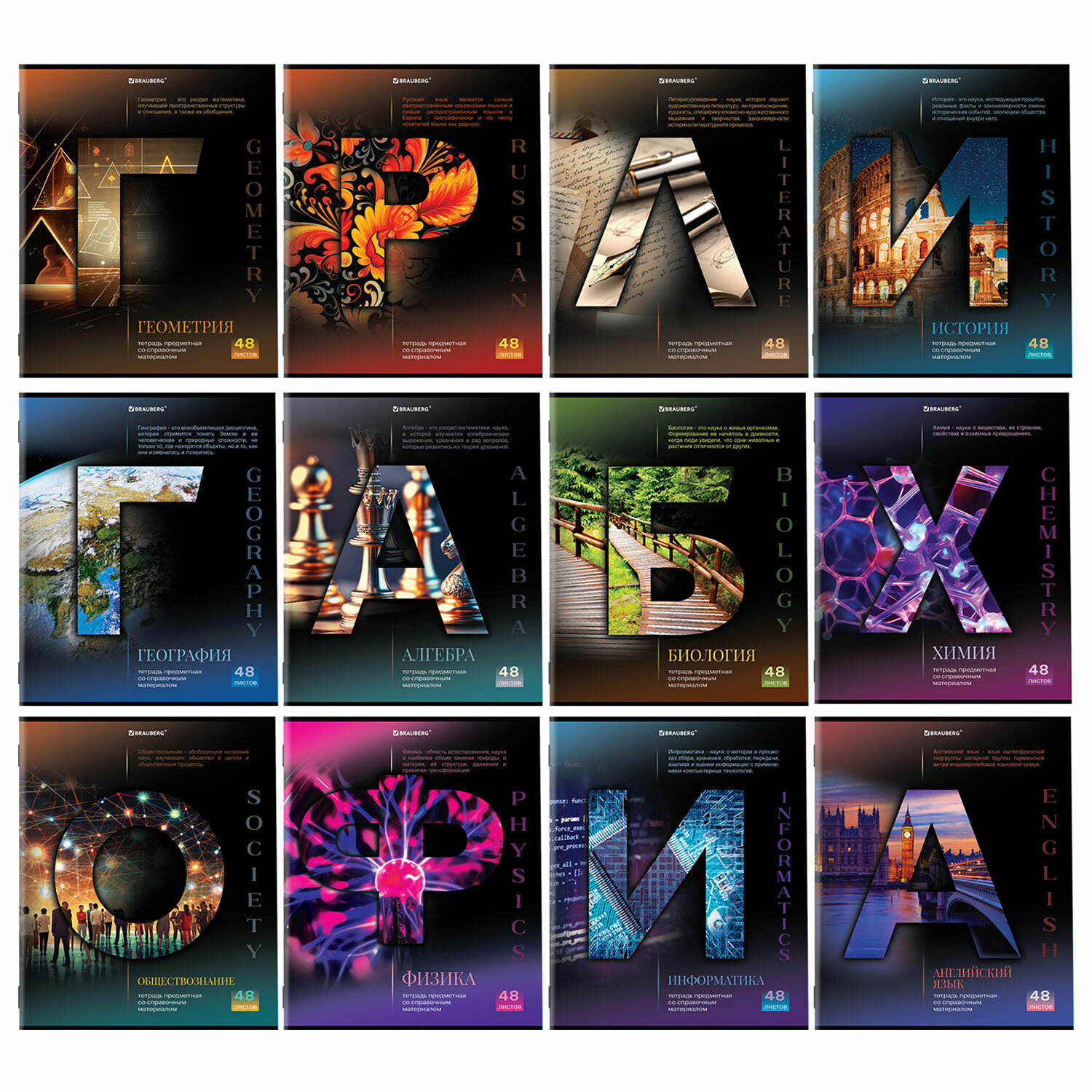 Тетради предметные, КОМПЛЕКТ 12 ПРЕДМЕТОВ, 48 л., обложка картон, BRAUBERG, "КЛАССИКА SCIENCE" Код товара: 404843 436,22 ₽ Купить Производитель:BRAUBERG Предметные тетради BRAUBERG из серии "КЛАССИКА SCIENCE" со справочным материалом предназначены для учащихся средних и старших классов. Обложка из импортного мелованного картона обеспечивает тетради долговечность. Обложка из мелованного картона обеспечивает тетради долговечность. В комплекте 12 тетрадей: Алгебра, Английский язык, Биология, География, Геометрия, Обществознание, История, Информатика, Литература (в линию), Русский язык (в линию), Физика, Химия. Тетради формата А5 содержат 48 листов, изготовленных из высококачественной офсетной бумаги плотностью 60 г/м2, 100% белизны, с красными полями. Листы соединены скобами.Производство: РоссияПредмет: комплектСерия: КЛАССИКА SCIENCEКоличество листов: 48Формат: А5Линовка блока: клетка/линияКрасные поля: даТип скрепления: скобаВнутренний блок: офсетПлотность внутренного блока: 60 г/м2Белизна: 100 %Обложка: мелованный картонДизайн: КЛАССИКА SCIENCEПлотность обложки: 190 г/м2Справочный материал: даДлина: 205 ммШирина: 165 ммИндивидуальная упаковка: даВес: 1,34 кгРазмер упаковки: 6 × 20.2 × 16.3 смОбъём: 0.0025 м3Промежуточная упаковка: 6 штТранспортная упаковка: 6 штШтрих-код: 4606224420332 Файлы Сертификат-1.jpg Сертификат-2.jpg Сертификат-3.jpg Сертификат-4.jpg
