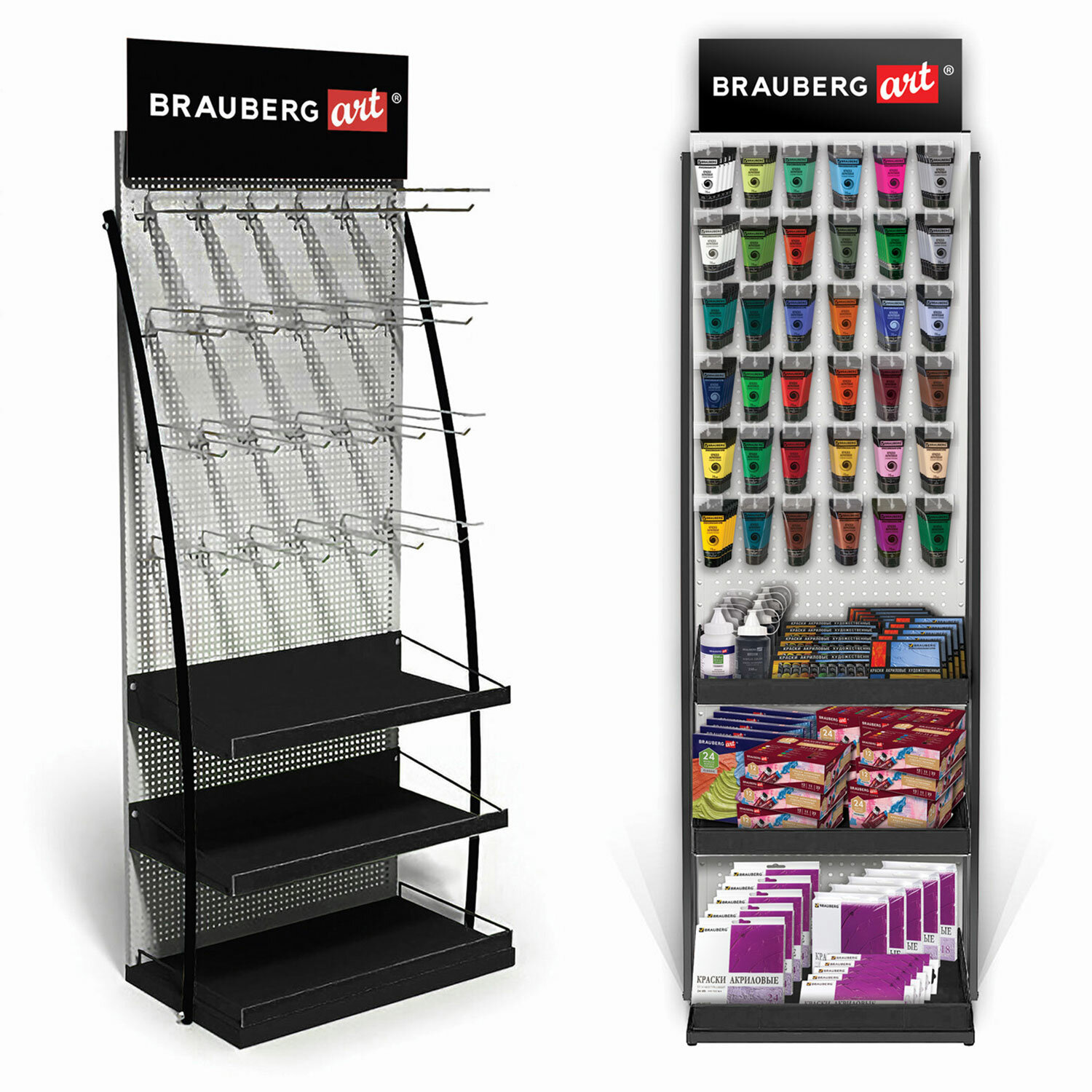 Стойка для размещения товара напольная BRAUBERG ART, 2050x600x500 мм, 35 крючков, 3 полки, металл Код товара: 504875 16 245 ₽ Купить Производитель:BRAUBERG ART Стильная и вместительная фирменная стойка BRAUBERG ART позволит выгодно разместить продаваемый ассортимент и повысить объем продаж. Яркая стойка идеально подходит для увеличения прибыли - товары размещаются с помощью подвесов, таким образом, весь ассортимент легко рассмотреть, сравнить и выбрать необходимое. Стойка обеспечивает быстрый доступ к каждому крючку, а перфорированная задняя панель позволит перемещать крючки под необходимые габариты товара. Надежная металлическая конструкция и компактные размеры стойки позволяют разместить максимальное количество товара даже в небольших торговых пространствах. Высота стойки рассчитана на средний рост человека - покупатель без труда сможет взять нужный товар. Помимо прочего, в комплект входит рекомендация по размещению продукции бренда - удобная планограмма, составленная специалистами группы компаний "САМСОН" и подробная инструкция по сборке стойки.Производство: РоссияТип товара: стойкаТип размещения: напольныйМатериал: металлВид наполнения: краскиРазборная конструкция: даКоличество крючков: 35 шт.Количество полок/рядов: 3 шт.Количество отделений: 0 шт.Высота: 205 смШирина: 60 смГлубина: 50 смВес: 24,8 кгРазмер упаковки: 16 × 206 × 59.5 смОбъём: 0.1961 м3Промежуточная упаковка: 1 штТранспортная упаковка: 1 штШтрих-код: 4606224308982 Приложение-1.jpeg Приложение-2.xlsx