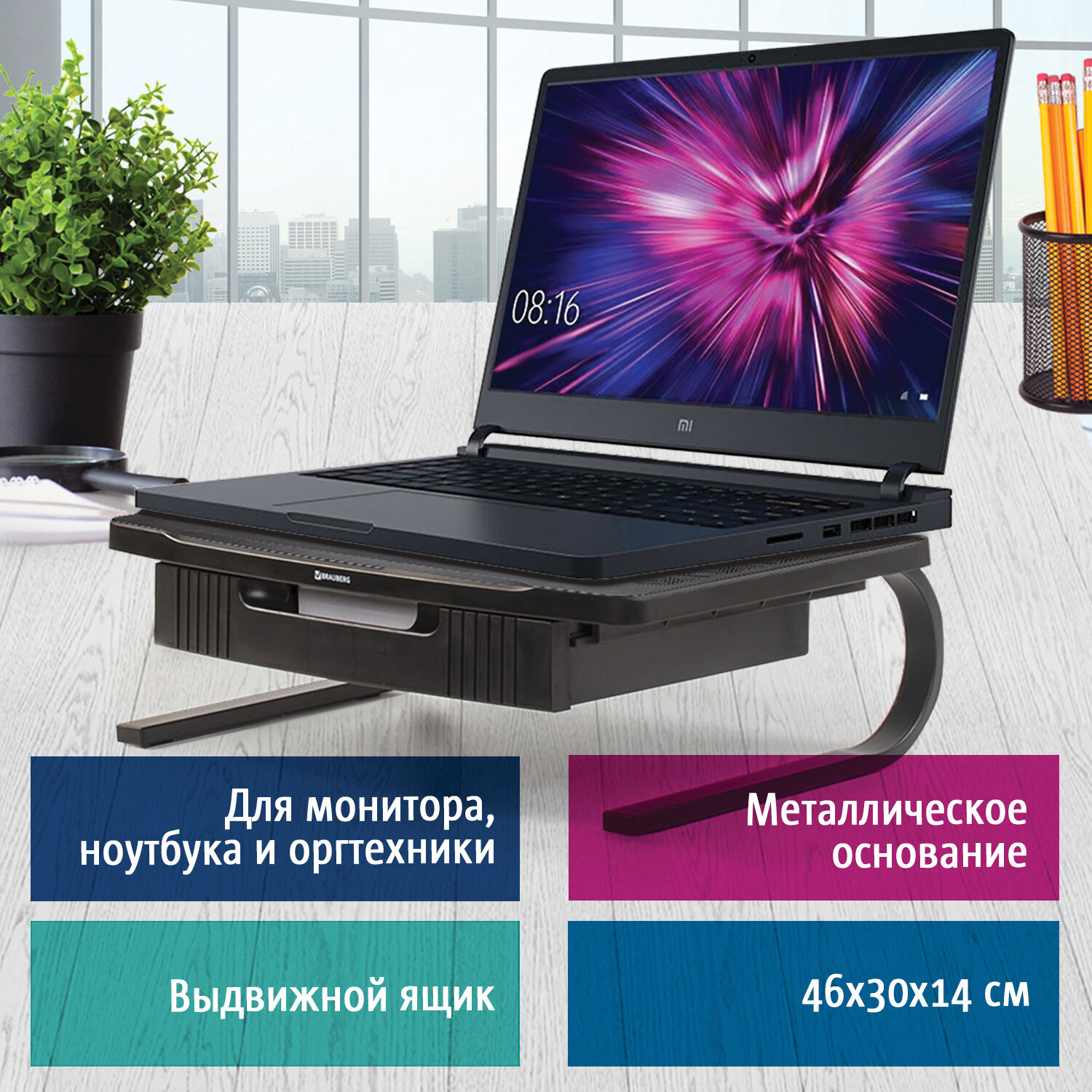 Подставка для оргтехники BRAUBERG, 1 отделение, 460х300х145 мм, металлическое основание, черная Код товара: 512667 1 989,44 ₽ Купить Производитель:BRAUBERG Подставка для оргтехники BRAUBERG обеспечивает эффективную организацию рабочего пространства и позволяет работать за компьютером без ущерба для осанки. Конструкция отличается устойчивостью, а резиновые вставки предотвращают скольжение. Размер подставки: 46х30х14,5 см. По центру расположен выдвижной ящик для канцелярских принадлежностей. Основание выполнено из металла. Размер лотка: 33х22х4 см.Производство: КитайНазначение: для монитора, для ноутбука, для оргтехникиКоличество полок: 1 шт.Количество ящиков: 1 шт. Отсек для мелочей: даСерия: pdobМатериал: металл/пластикВысота: 145 ммРазмер подставки: 145х460х300 ммЦвет: черныйВес: 2,36 кгРазмер упаковки: 8 × 46.7 × 30.9 смОбъём: 0.013 м3Промежуточная упаковка: 6 штТранспортная упаковка: 6 штШтрих-код: 4606224181042 Файлы Сертификат-1.jpg Сертификат-2.jpg Сертификат-3.jpg Сертификат-4.jpg