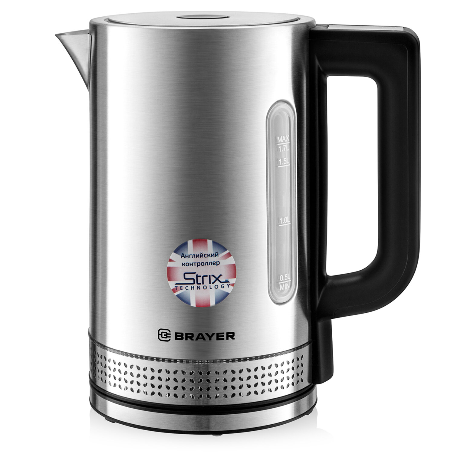 Чайник с терморегулятором BRAYER BR1060, 1,7 л, 2200 Вт, закрытый нагревательный элемент, сталь Код товара: 456595 4 265,04 ₽ Купить Производитель:BRAYER Чайник с терморегулятором BRAYER BR1060 предназначен для использования дома. Чайник с английским контроллером VNQ by STRIX обеспечивает большее количество рабочих циклов (закипаний). Объем чайника составляет 1,7 л. Это оптимальный объем для вашей семьи. Благодаря мощности 2200 Вт чайник вскипятит воду за считанные минуты и сэкономит электроэнергию. Скрытый нагревательный элемент обеспечит безопасное использование. При отсутствии воды и при закипании чайник отключится самостоятельно. Корпус изготовлен из прочной нержавеющей стали и дополнен индикатором уровня воды. Для защиты от накипи в носик встроен фильтр. Управление чайником осуществляется на ручке. Каждый вид чая раскрывает свой вкус под определенную температуру. В чайнике предусмотрена функция кипячения и подогрева воды для разных сортов чая (40, 60, 70, 80, 90, 100 °C). Чайник обладает функцией поддержания заданной температуры в течение 2-х часов. Внутренняя подсветка чайника варьируется по цвету в зависимости от выбранной температуры. Производитель оставляет за собой право без предварительного уведомления вносить изменения в технические характеристики, комплектацию и конструкцию, не ухудшающие эксплуатационные характеристики изделия.Производство: КитайОбъем: 1.7 лМощность: 2200 ВтМатериал корпуса: нержавеющая стальВид нагревательного элемента: закрытыйТерморегулятор: даАвтоотключение при закипании: даСерия: BR1060Отключение при отсутствии воды: даИндикатор включения: даИндикация уровня воды: даВращение на 360°: даПодсветка: даФильтр от накипи: даДлина шнура: 0.8 мЦвет корпуса: стальнойШирина: 185 ммВысота: 225 ммГлубина: 170 ммВес: 1 кгРазмер упаковки: 17.9 × 24.3 × 19.9 смОбъём: 0.0103 м3Промежуточная упаковка: 6 штТранспортная упаковка: 6 штШтрих-код: 9120099334099 Файлы Приложение-1.pdf Сертификат-1.jpg Сертификат-2.jpg Сертификат-3.jpg Сертификат-4.jpg Сертификат-5.jpg Сертификат-6.jpg Сертификат-7.jpg Сертификат-8.jpg Сертификат-9.jpg