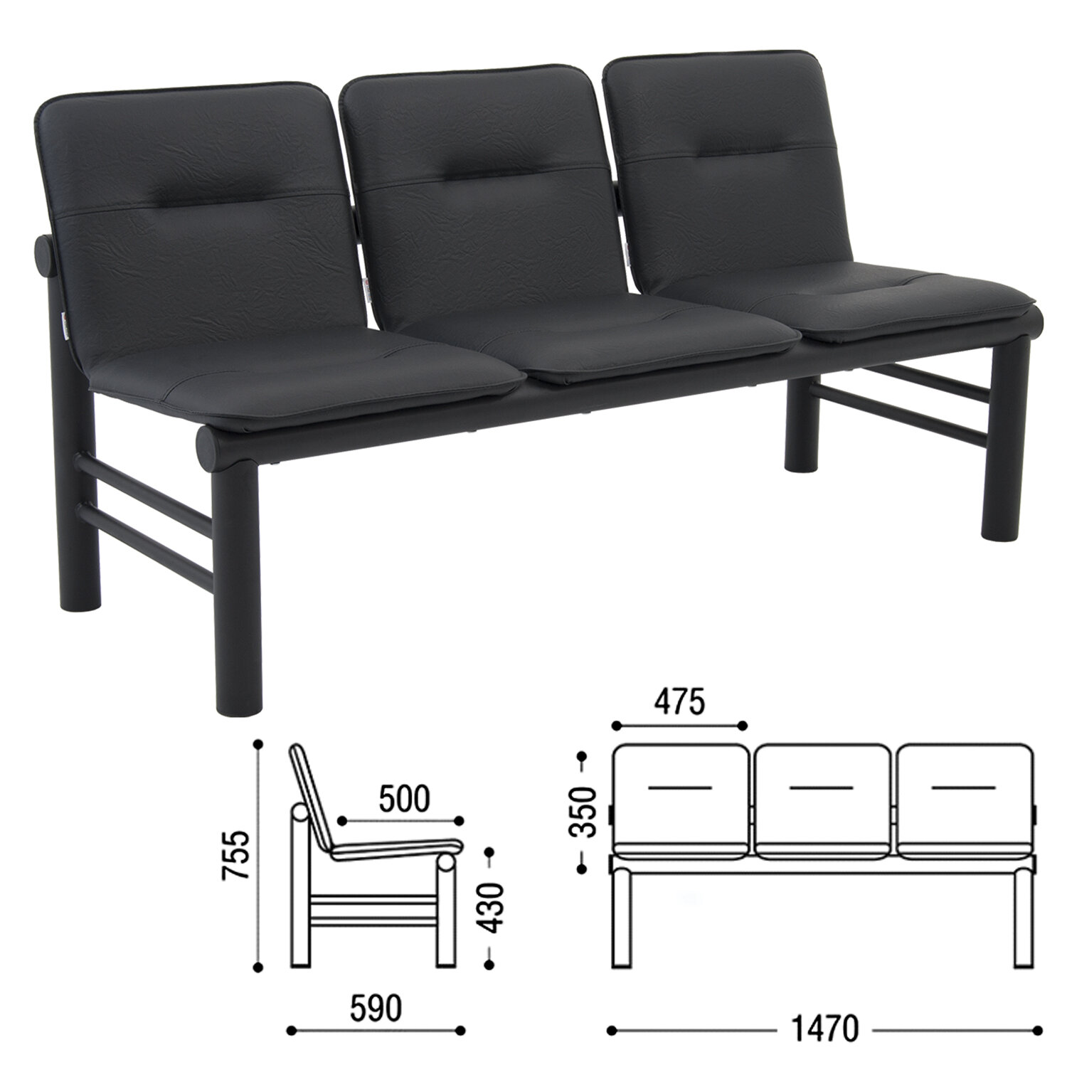 Кресло для посетителей трехсекционное "Троя",1470х590х755 мм, черный каркас, кожзам черный Код товара: 530252 24 301,49 ₽ Купить Производитель:COMFORUM Многоместное кресло улучшенной эргономики, разработанное на основе лучших мировых аналогов, предназначено для эксплуатации в местах ожидания, приемных и комнат отдыха в офисах, холлах гостиниц, кинотеатров и т.п. Производство: РоссияСерия: ТрояМатериал обивки: кожзамМатериал сиденья и спинки: фанера, пенополеуретановый настил 30 ммТип рамы: разборная металлическаяДиаметр трубы рамы: 25, 60Высота: 755 ммШирина: 1470 ммГлубина: 590 ммВысота спинки от сиденья: 350 ммШирина сиденья: 475 ммГлубина сиденья: 500 ммВысота от пола до сиденья: 430 ммЦвет обивки: черныйЦвет рамы: черныйСоответствует требованиям ГОСТа: ГОСТ 19917-2014Тип поставки: в разобранном видеВес: 22,61 кгРазмер упаковки: 1 × 1 × 281034 смОбъём: 0.281 м3Промежуточная упаковка: 1 штТранспортная упаковка: 1 шт Файлы Приложение-1.pdf Приложение-2.pdf Сертификат-1.jpg Сертификат-2.jpg Сертификат-3.jpg