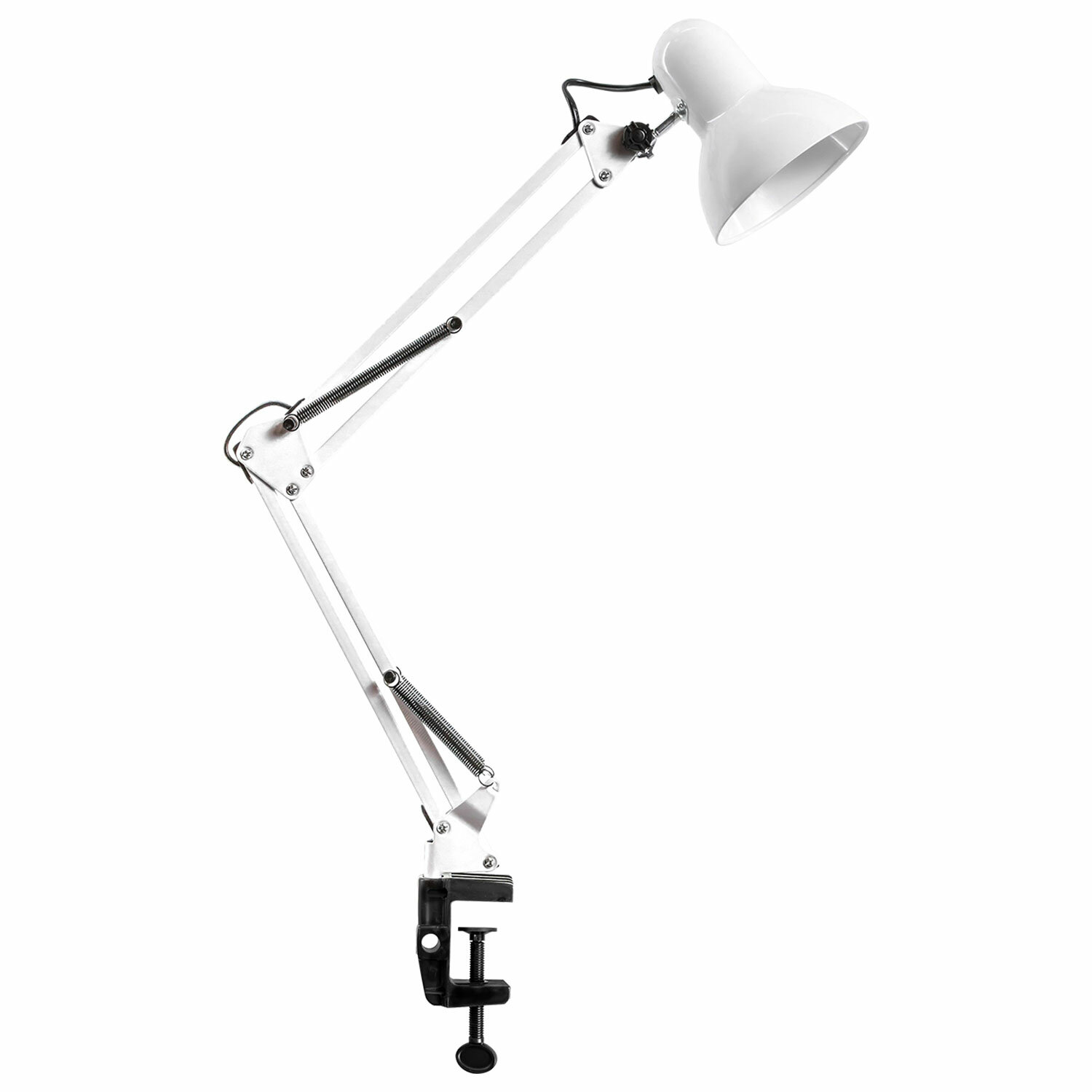Настольная лампа / светильник на струбцине, Е27, 40 Вт, белый, высота 75 см, DASWERK (ДАСВЕРК) Код товара: 238323 917,18 ₽ Купить Производитель:DASWERK Настольная лампа-светильник DASWERK является незаменимым атрибутом рабочего места. Экономит пространство, вращается на 360 градусов, позволяет направить свет под нужным углом. Прекрасно подойдет для школьника, студента, мастера салона красоты. Светильник оснащен прочным металлическим корпусом белого цвета и упругими пружинами, что делает его надежным, удобным и безопасным. Широкий плафон размером 16,5 см обеспечивает освещение широкой рабочей зоны, не создавая тень. Конструкция светильника позволяет вращать его на 360 градусов и наклонять под любым углом. Благодаря струбцине светильник с легкостью крепится на рабочий стол, не занимая много места. В комплекте поставляется лампочка Е27 мощностью 5 Ватт с холодным белым светом. Простой и лаконичный дизайн светильника подойдет к любому интерьеру дома или офиса, отлично будет смотреться в маникюрном или косметологическом салоне.Производство: КитайТип лампы: любаяТип крепления: струбцинаМощность: 40 ВтЦоколь: Е27Назначение: универсальныйЛампа в комплекте: даСерия: DAS HAUSЦветность света: холодный белый - от 6100 и болееСветовой поток: 100 ЛюменКол-во режимов свечения: 1Источник света: сменная лампа накаливанияИсточник питания: сетьРасположение кнопки выключателя: на проводеОтсутствие мерцания и шумов: даСкладная конструкция: даВысота: 75 смДлина шнура: 1.5 мМатериал корпуса: пластик/металлЦвет корпуса: белый/черныйВес: 960 грРазмер упаковки: 8.9 × 39.5 × 19.5 смОбъём: 0.0081 м3Промежуточная упаковка: 16 штТранспортная упаковка: 16 штШтрих-код: 4606224412368 Сертификат-1.jpg Сертификат-2.jpg Сертификат-3.jpg