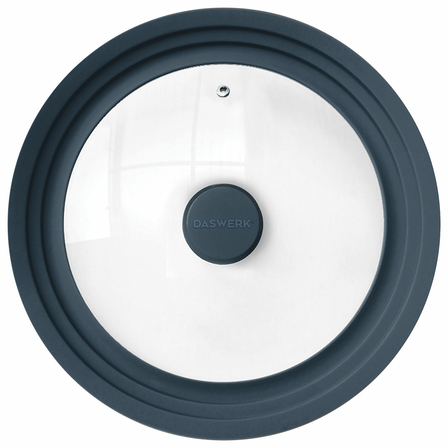 Крышка для любой сковороды и кастрюли универсальная 3 размера (24-26-28 см) антрацит, DASWERK (ДАСВЕРК) Код товара: 607589 649,44 ₽ Купить Производитель:DASWERK Универсальная крышка DASWERK, выполненная из силикона и стекла, позволит сэкономить не только время, но и пространство на кухне: одну крышку можно использовать для посуды разных размеров: 24 см, 26 см и 28 см в диаметре. Крышка DASWERK изготовлена из термостойкого стекла, что позволяет контролировать процесс приготовления без потери тепла. Ободок из экологичного жаропрочного силикона выдерживает температуру до 220 °С. Преимущества: - не выделяет вредных веществ; - легко моется и не впитывает запахи; - можно использовать крышку для приготовления в духовке; - силиконовые части крышки надежно защищают стекло при падении. Больше не нужно хранить гору стеклянных крышек разного размера, универсальная крышка DASWERK существенно сэкономит место на кухне.Производство: КитайДиаметр: 24-26-28 смНазначение для: воки, жаровни, кастрюли, ковши, сковороды, сотейникиСерия: KucheМатериал: стекло, силиконЦвет: антрацитовыйВес: 872 грРазмер упаковки: 6 × 29.9 × 30.6 смОбъём: 0.0066 м3Промежуточная упаковка: 8 штТранспортная упаковка: 8 штШтрих-код: 4606224320618 Сертификат-1.jpg Сертификат-2.jpg Сертификат-3.jpg