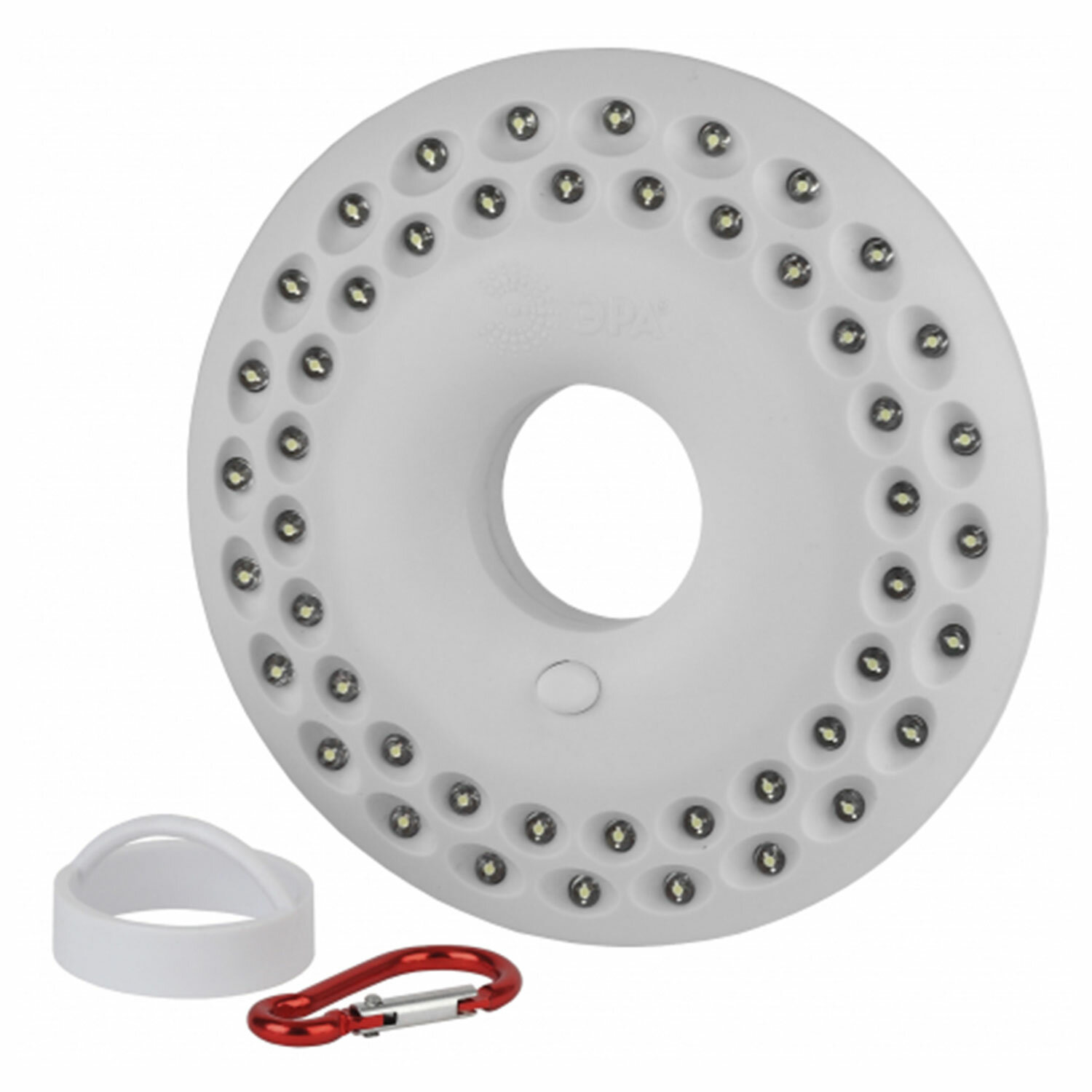 Фонарь туристический ЭРА 48xLED, крепление карабин, магниты, питание 3xAA (не в комплекте), KB-601 Код товара: 238291 636,89 ₽ Купить Производитель:ЭРА Светодиодный кемпинговый фонарь ЭРА в футуристичном дизайне. Фонарь предназначен для активного отдыха, отдыха на природе, для пикников, дачи. Дизайн фонаря функционален. 48 мощных светодиодов расположены по кругу таким образом, чтобы освещать максимально большую площадь ярким белым светом. Светодиоды энергоэкономичны, не перегорают и не требуют замены. Посередине фонаря предусмотрено отверстие, если надеть фонарь на любую подставку, например, на бутылку, получится настольный светильник. Фонарь оснащён мощным магнитом, так что его легко приклеить к металлической поверхности. Корпус выполнен из ударопрочного пластика и защищает от царапин и механических повреждений, а светодиоды встроены внутрь корпуса, что обеспечивает им дополнительную защиту. Дальность луча фонаря составляет 21 метр, мощность - 3,3 Вт. Фонарь питается от двух батареек АА. Это позволило сделать фонарь портативным и лёгким, но в тоже время надёжным. Фонарь комплектуется кронштейном для подвешивания. Фонарь можно использовать не только в походах, но и в любых ситуациях, когда необходим яркий дополнительный источник света. Диаметр фонаря - 14 см, диаметр отверстия в центре 3,8 см, применяется для подвеса с карабином, которые идут в комплекте, или установки на горлышко бутылки.Производство: КитайТип фонаря: походный (кемпинговый)Тип элемента питания: 3 элемента AAТип лампы: светодиодная Цвет ламп: белыйКоличество ламп: 48 шт.Максимальная дальность направленного света: 21 мКоличество режимов работы: 1Время непрерывной работы: 15 чКрючок для подвешивания: даМагнит для крепления к поверхностям: даДлина: 14 смШирина: 14 смВысота: 2 смМатериал корпуса: пластикЦвет корпуса: белыйВес: 0.126 гРазмер упаковки: 3 × 16.3 × 14.6 смОбъём: 0.0009 м3Промежуточная упаковка: 24 штТранспортная упаковка: 72 штШтрих-код: 5055945580396 Файлы Сертификат-1.jpg Сертификат-2.jpg Сертификат-3.jpg Сертификат-4.jpg