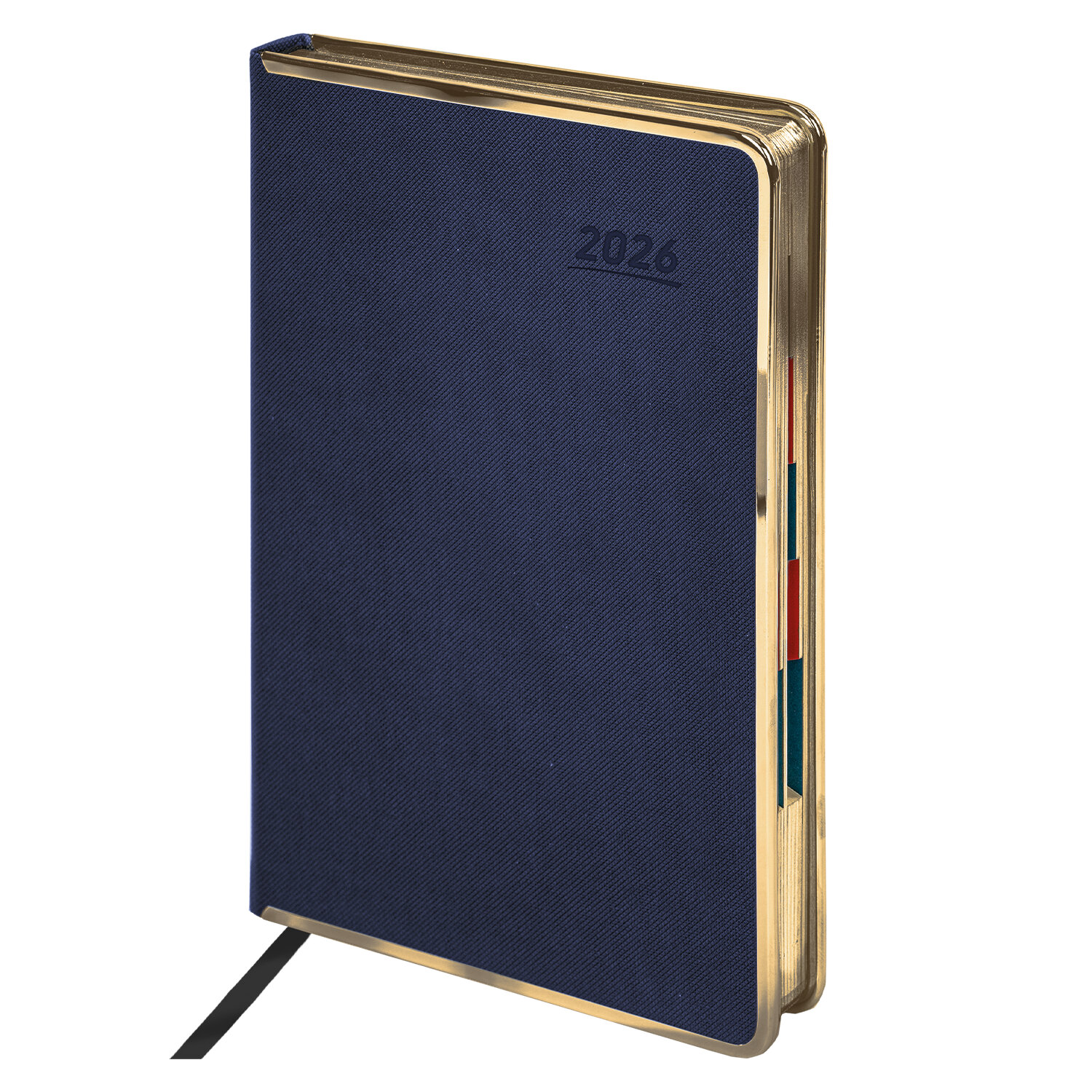 Ежедневник датированный 2026 А5 148х218 мм, GALANT "Infinity Gold", под кожу, темно-синий Код товара: 117503 1 259,45 ₽ Купить Производитель:GALANT Датированный ежедневник серии "Infinity Gold" от GALANT – надежный спутник делового человека. Внутренний блок включает 168 листов тонированной бумаги цвета "слоновая кость" плотностью 70 г/м2. Каждая страничка имеет перфорированный угол. Благодаря стандартному формату А5 (148х218 мм) ежедневник удобно использовать как в офисе, так и на выездных деловых встречах. Твердая обложка темно-синего цвета выполнена под кожу с отделкой из металлических накладок, что увеличивает ее износоустойчивость. Срез ежедневника покрыт золотой фольгой в цвет металлических накладок, и это придает ему особый шарм. Материал обложки подходит для горячего тиснения. Дополнением является закладка-ляссе, с помощью которой при необходимости можно быстро открыть ежедневник на нужной странице, а также вырубка по месяцам. Ежедневник снабжен обширным справочным материалом. В конце есть 6 страниц для записей и заметок.Производство: КитайТип ежедневника: датированныйФормат: А5Обложка: под кожуВид обложки: твердаяКоличество листов: 168 шт.Особенности: вырубка блока, закладка-ляссе, металлические углы, перфорация уголков, поролоновая прослойка, скругленные углы, справочная информацияСерия: Infinity GoldГод: 2026Тип застежки: нетОсновной цвет обложки: темно-синийДополнительный цвет обложки: нетЦвет среза: золотойЦвет внутреннего блока: кремовыйПлотность внутреннего блока: 70 г/м2Высота строки для записи: 4 ммТип крепления: сшивкаПечать блока: 2 краскиПодходит для блинтового тиснения: даПодходит для тиснения фольгой: даПодходит для заливки полимерной смолой: даДлина: 218 ммШирина: 148 ммТолщина: 20 ммВес: 506 грРазмер упаковки: 2.2 × 21.8 × 15.1 смОбъём: 0.001 м3Промежуточная упаковка: 15 штТранспортная упаковка: 15 штШтрих-код: 4606224489308 Файлы Сертификат-1.jpg Сертификат-2.jpg Сертификат-3.jpg Сертификат-4.jpg Сертификат-5.jpg Сертификат-6.jpg Сертификат-7.jpg Сертификат-8.jpg Сертификат-9.jpg Сертификат-10.jpg Сертификат-11.jpg Сертификат-12.jpg Сертификат-13.jpg Сертификат-14.jpg Сертификат-15.jpg Сертификат-16.jpg Сертификат-17.jpg Сертификат-18.jpg Сертификат-19.jpg Сертификат-20.jpg Сертификат-21.jpg Сертификат-22.jpg Сертификат-23.jpg Сертификат-24.jpg Сертификат-25.jpg Сертификат-26.jpg