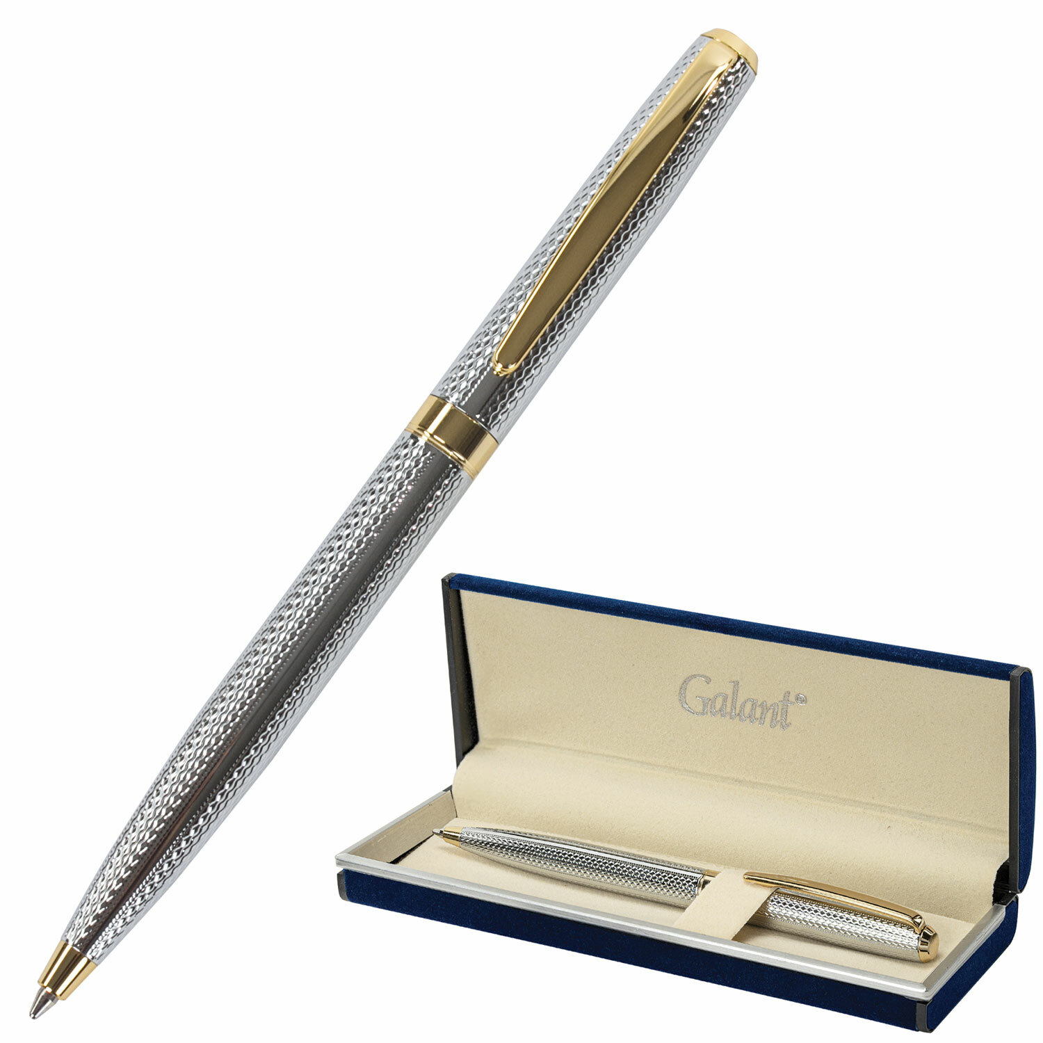 Ручка подарочная шариковая GALANT "Marburg", корпус серебристый с гравировкой, золотистые детали, пишущий узел 0,7 мм, синяя Код товара: 141015 1 374,77 ₽ Купить Производитель:GALANT Изящная ручка GALANT "Marburg" станет отличным подарком к любому празднику или событию, подчеркнет статус и изысканность вкуса владельца. Утонченная модель ручки с корпусом из латуни серебристого цвета и золотыми деталями прекрасно лежит в руке. Синий цвет чернил, длина стержня составляет 98 мм, а диаметр пишущего узла - 0,7 мм. Поставляется в индивидуальном подарочном футляре. Подходит для гравировки.Производство: Тайвань (Китай)Цвет корпуса: серебристыйМатериал корпуса: латуньПокрытие корпуса: хромДекор корпуса: гравировкаМатериал деталей отделки: сплав латуниМеханизм: поворотныйСерия: MarburgДлина стержня: 98 ммДиаметр пишущего узла: 0.7 ммЦвет чернил: синийПодарочный футляр: даСрок годности: 60 месВес: 134 грРазмер упаковки: 2.8 × 16.5 × 6.1 смОбъём: 0.0004 м3Промежуточная упаковка: 100 штТранспортная упаковка: 100 штШтрих-код: 4606224040721 Файлы Сертификат-1.jpg Сертификат-2.jpg Сертификат-3.jpg Сертификат-4.jpg Сертификат-5.jpg Сертификат-6.jpg Сертификат-7.jpg Сертификат-8.jpg Сертификат-9.jpg Сертификат-10.jpg Сертификат-11.jpg Сертификат-12.jpg Сертификат-13.jpg Сертификат-14.jpg Сертификат-15.jpg Сертификат-16.jpg Сертификат-17.jpg Сертификат-18.jpg Сертификат-19.jpg Сертификат-20.jpg Сертификат-21.jpg Сертификат-22.jpg Сертификат-23.jpg Сертификат-24.jpg Сертификат-25.jpg Сертификат-26.jpg