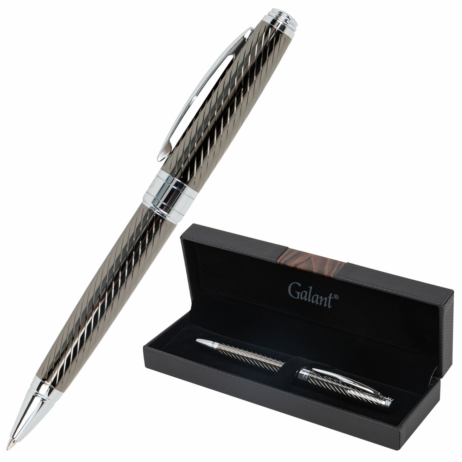 Ручка подарочная шариковая GALANT "Gotter", корпус оружейный металл, детали серебро, узел 0,7 мм, линия письма 0,5 мм, синяя Код товара: 144176 1 723,58 ₽ Купить Производитель:GALANT GALANT "Gotter" – это подарочная шариковая ручка с синими чернилами, которая подойдет как коллеге, так и начальнику, станет отличным подарком к любому празднику или памятному событию, подчеркнет статус и изысканность владельца. Корпус покрыт гравировкой и увеличивается к торцевой части. Клип позволяет фиксировать ручку на ежедневниках, блокнотах и карманах одежды. GALANT "Gotter" оснащена поворотным механизмом, внутри которого расположен стержень. Диаметр наконечника составляет 0,7 мм, то есть ручка идеально подходит для быстрого стиля письма. Упакована в подарочный футляр.Производство: Тайвань (Китай)Цвет корпуса: темно-серыйМатериал корпуса: латуньПокрытие корпуса: лаковоеДекор корпуса: гравировка/узорМатериал деталей отделки: латуньМеханизм: поворотныйСерия: GotterДлина стержня: 98 ммДиаметр пишущего узла: 0.7 ммЦвет чернил: синийПодарочный футляр: даСрок годности: 60 месВес: 179 грРазмер упаковки: 3.6 × 18.2 × 6.3 смОбъём: 0.0006 м3Промежуточная упаковка: 100 штТранспортная упаковка: 100 штШтрих-код: 4606224409597 Файлы Сертификат-1.jpg Сертификат-2.jpg Сертификат-3.jpg Сертификат-4.jpg Сертификат-5.jpg Сертификат-6.jpg Сертификат-7.jpg Сертификат-8.jpg Сертификат-9.jpg Сертификат-10.jpg Сертификат-11.jpg Сертификат-12.jpg Сертификат-13.jpg Сертификат-14.jpg Сертификат-15.jpg Сертификат-16.jpg Сертификат-17.jpg Сертификат-18.jpg Сертификат-19.jpg Сертификат-20.jpg Сертификат-21.jpg Сертификат-22.jpg Сертификат-23.jpg Сертификат-24.jpg Сертификат-25.jpg Сертификат-26.jpg