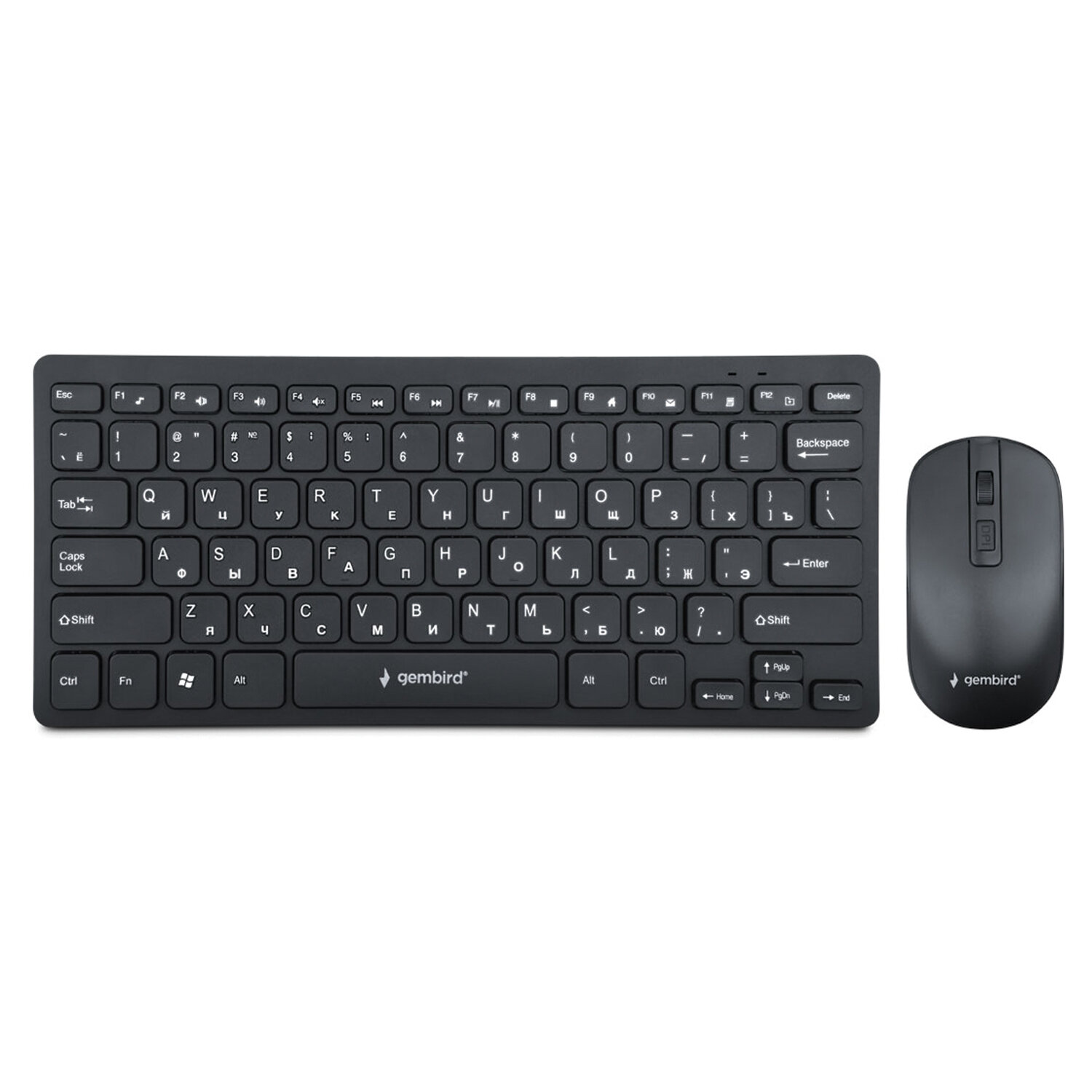 Набор беспроводной GEMBIRD KBS-9100, клавиатура 78 клавиш, мышь 4 кнопки, 1600 DPI, 2.4 ГГц, черный Код товара: 514300 1 062,29 ₽ Купить Производитель:GEMBIRD Комплект клавиатура + мышь GEMBIRD станет вашим надежным помощником в работе и развлечениях! Тип подключения: беспроводной (2.4 ГГц); Дальность действия: 10 м; Интерфейс: USB; USB-приемник: общий, в отсеке клавиатуры; Цвет: чёрный. Клавиатура: Количество клавиш: 78; Питание: батарея АAA x 2 шт.; Размеры: 285х123х25 мм; Вес: 247 г. Мышь: Количество кнопок: 4; Тип сенсора: оптический, Pixart 3065; Разрешение: 1000/1600 DPI; Питание: батарея АAA x 2 шт.; Размеры:115х63х32 мм; Вес: 68 г. Вся информация на сайте о товарах носит справочный характер и не является публичной офертой в соответствии с пунктом 2 статьи 437 ГК РФ. Производитель оставляет за собой право изменять характеристики товара, его внешний вид и комплектность без предварительного уведомления продавца.Производство: КитайБеспроводное подключение: даРазъем клавиатуры и мыши: USBКоличество клавиш клавиатуры: 78Дополнительные клавиши клавиатуры: 0Количество кнопок мыши: 4Технология сенсора мыши: оптическаяМаксимальное разрешение курсора: 1600 dpiРадиус действия: 10 мДлина шнура: 0 мТип клавиатуры: мембраннаяЦвет: черныйПитание клавиатуры: 2 батареи АААПитание мыши: 2 батареи ААAБатарейки входят в комплект: даЭргономичная форма корпуса: даШирина клавиатуры: 285 ммГлубина клавиатуры: 123 ммВысота клавиатуры: 25 ммСерия: KBSВес клавиатуры: 247 гДлина мыши: 115 ммШирина мыши: 63 ммВысота мыши: 32 ммВес мыши: 68 гВес: 454 грРазмер упаковки: 4.3 × 36.6 × 12.8 смОбъём: 0.0025 м3Промежуточная упаковка: 20 штТранспортная упаковка: 20 штШтрих-код: 4610085270760 Сертификат-1.jpg Сертификат-2.jpg