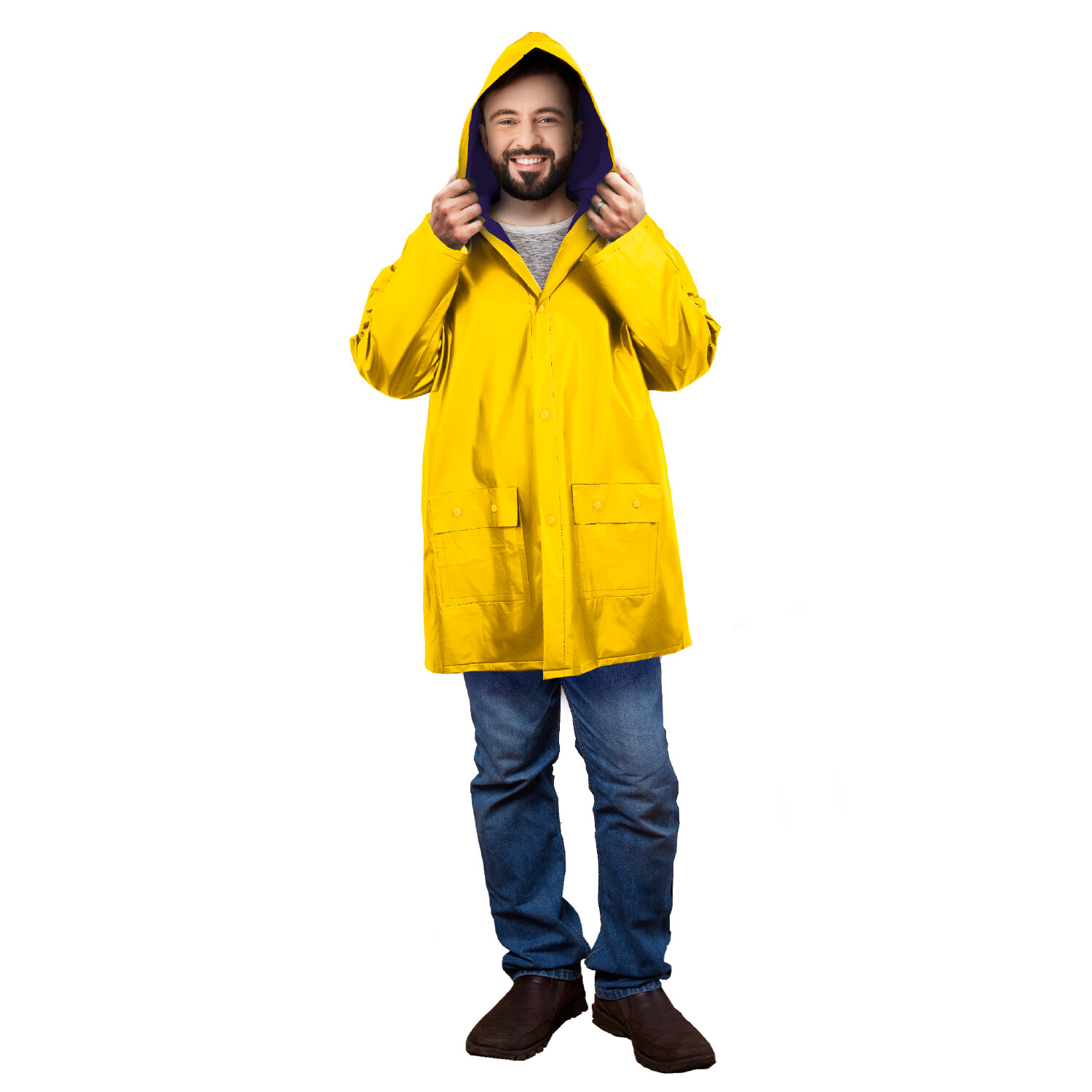 Дождевик-куртка желтая на кнопках С КАРМАНАМИ, виниловая, размер 50-56, рост 170-185, ГРАНДМАСТЕР, 610939 Код товара: 610939 336,61 ₽ Купить Производитель:ГРАНДМАСТЕР Дождевик-куртка ГРАНДМАСТЕР на кнопках и с капюшоном из плотного ПВХ предназначена для защиты от ветра, дождя и повышенной влажности воздуха. Подойдет для работы на улице, отдыха на природе, рыбалки, пикника и городских прогулок. Дождевик-куртка универсального размера с капюшоном изготовлена из плотного водозащитного материала – поливинилхлорида (PVC). Застегивается на 4 пары кнопок из полипропилена (PP). В капюшоне есть кулиска с пластиковыми наконечниками. Карманы с влагозащитными клапанами на кнопках. Рукава сужаются книзу. Края рукавов, полочек и низ изделия подогнуты и надежно проклеены. Супер-прочный и стойкий материал. Для многоразового использования. Длина по спинке (от воротника до нижнего края) – 90 см. Полуобхват груди (измеренный на уровне глубины проймы) – 70 см. Длина рукава (от воротника до края) – 80 см. Полуобхват рукава – от 26 см до 19 см. Размеры капюшона (в сложенном виде) – высота 34 см, глубина 27 см. Цвет верха – желтый. Цвет внутренней части – темно-фиолетовый. Упаковка – прозрачный пакет с евро-подвесом.Производство: КитайРазмер: 50-56 (XL)Серия: куртка-дождевикМатериал: ПВХРост: 170-185 смДлина: 90 смШирина: 70 смТип застежки: кнопкиС карманами: даЗащитные свойства: ВнСоответствует требованиям ГОСТа: нетЦвет: желтыйВес: 362 грРазмер упаковки: 1.9 × 27.9 × 24.8 смОбъём: 0.001 м3Промежуточная упаковка: 30 штТранспортная упаковка: 30 штШтрих-код: 4606224435824 Сертификат-1.jpg Сертификат-2.jpg Сертификат-3.jpg