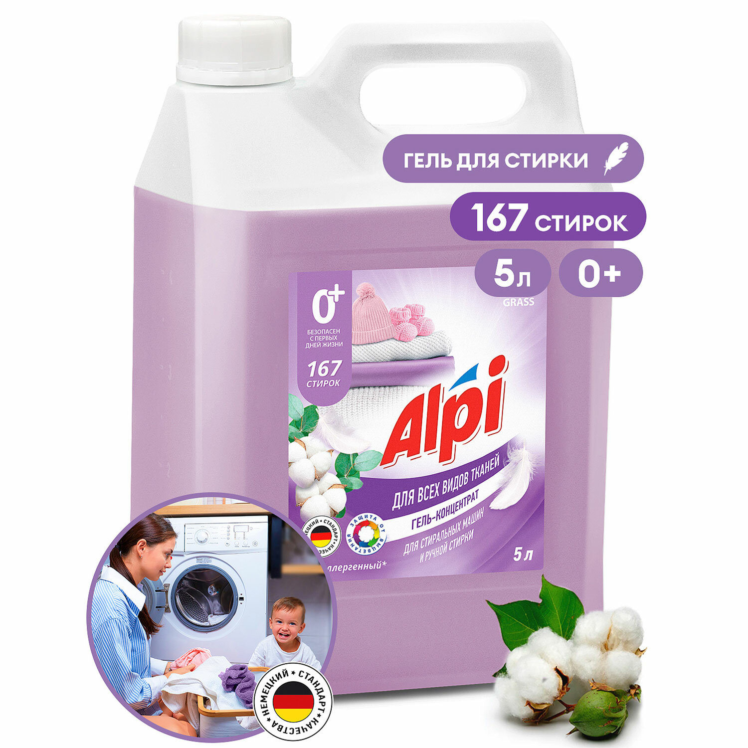 Гель для стирки белья концентрированный гипоаллергенный 5 кг, GRASS ALPI DELICATE Код товара: 609895 1 385,66 ₽ Купить Производитель:GRASS Гель GRASS ALPI DELICATE предназначен для стирки и замачивания изделий из хлопчатобумажных, льняных, синтетических тканей и тканей из смешанных волокон в стиральных машинах любого типа и ручной стирки в воде любой жесткости. Отстирывает даже самые сильные загрязнения. Стирку вещей осуществлять при температуре 20-60 °С. Для выбора способа стирки следуйте рекомендациям на ярлыках изделий. Перед использованием средство рекомендуется взболтать. Состав: 30% очищенная вода; 5-15% анионные ПАВ; 5% неионогенные ПАВ, мыло, энзимы, поликарбоксилаты, метилхлороизотиазолинон, метилизотиазолинон, ароматизирующая добавка. Способ применения: налейте средство в отсек для стиральных порошков. Для удаления трудных пятен нанесите гель непосредственно на пятно перед стиркой. Использовать строго по назначению!Производство: РоссияТип: универсальныйОбъем/Вес: 5000 мл/гВид средства: гель концентратНазначение: для всех типов бельяОтдушка: свежестьТовар относится к сегменту ЭКОНОМ: даКоличество бункеров: 0 шт.Серия: GEL CONCENTRATEВид упаковки: канистраСрок годности: 36 месРазмер упаковки: 27.2 × 18.7 × 13.7 смОбъём: 0.0079 м3Промежуточная упаковка: 4 штТранспортная упаковка: 4 штШтрих-код: 4670113603038 Приложение-1.pdf Сертификат-1.jpg