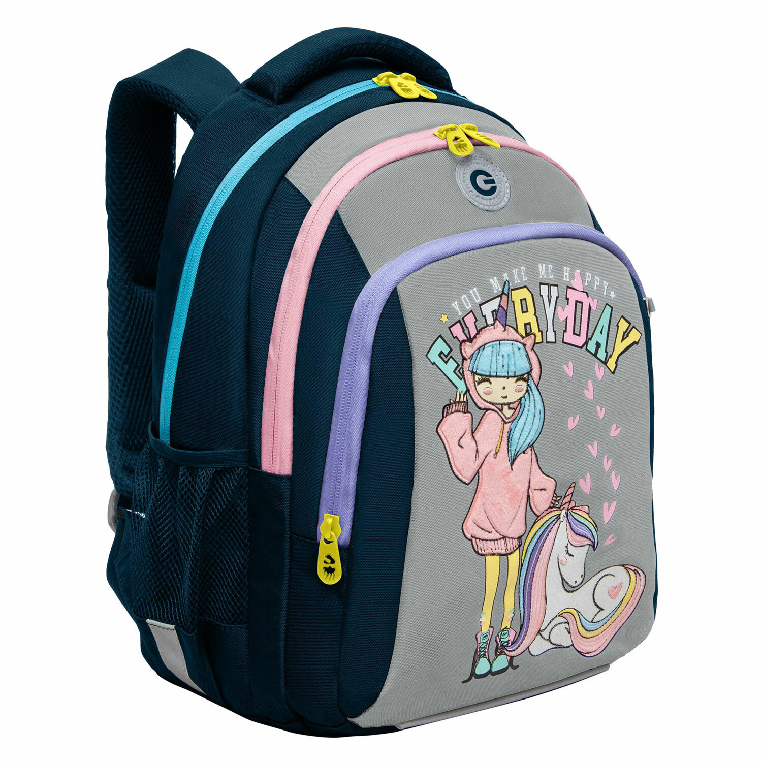 Рюкзак GRIZZLY школьный, анатомическая спинка, 3 отделения, для девочек, EVERY DAY, 40х27х20 см Код товара: 272822 3 563,56 ₽ Купить Производитель:GRIZZLY Рюкзак GRIZZLY разработан для учащихся начальной и средней школы. Анатомическая спинка и удобные лямки позволяют равномерно распределять нагрузку на спину и плечи. Лямки снабжены дополнительной нагрудной стяжкой со свистком, чтобы рюкзак держался на зимней объемной одежде. Материал рюкзака с водо- и грязеотталкивающей пропиткой. Рюкзак имеет три отделения для учебных пособий форматом А4. В основном отделении есть карман для планшета или небольшого ноутбука 13". Дополнительное переднее отделение оснащено съемным держателем для ключей и тремя карманами. Двунаправленные реверсные молнии с брендированными пуллерами на замках позволяют легко открывать и закрывать рюкзак. У рюкзака есть удобная ручка для переноски, дополнительная ручка-петля и два боковых кармана для бутылочки с водой. Светоотражающие элементы с 4 сторон обеспечивают дополнительную безопасность ребенка в темное время суток. Длина лямки – 36 см. Длина регулировочной стропы – 55 см.Производство: КитайПол ребенка: для девочекСерия: RG-61Дизайн: EVERY DAYВозрастная группа: 7-15 летОбъем: 13.5 лТип спинки: анатомическая, вентилируемаяНагрудный ремешок: даКоличество отделений: 3Количество карманов: 2 шт.Боковые карманы: даСветоотражающие элементы: даНаличие ручки для переноса: даРегулируемые лямки: даВентилируемые лямки: даМатериал спинки: полиэстерМатериал дна: полиэстерПерсонализация: брелокЦвет: синий/серыйУзор: девочкаВысота: 40 смШирина: 27 смГлубина: 20 смДлина лямок: 91 смВес: 0.8 кгРазмер упаковки: 7.4 × 41.2 × 31.8 смОбъём: 0.0055 м3Промежуточная упаковка: 18 штТранспортная упаковка: 18 штШтрих-код: 4670197402374 Сертификат-1.jpg Сертификат-2.jpg