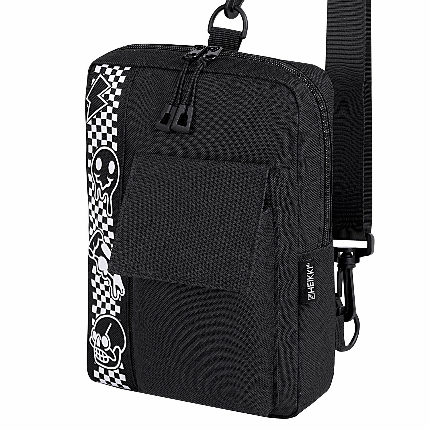 Сумка на плечо HEIKKI TORRENT (ХЕЙКИ) с карманом, "Chess emoji", черная, 25х18х3 см Код товара: 272638 475,76 ₽ Купить Производитель:HEIKKI Сумка на плечо HEIKKI TORRENT – это легкий и практичный аксессуар для повседневной носки, вмещающий предметы формата А5 (тетради, документы) и другие необходимые вещи (телефон, ключи, наушники). Легкая и удобная в использовании сумка на плечо, сумка-мессенджер, барсетка, сумка кросс-боди. Наружный карман на липучке обеспечит быстрый доступ к необходимым вещам. Модель имеет съемный ремень с разными вариантами крепления. Удобная регулировка длины ремня производится с помощью пряжки, выполненной из качественного пластика. Максимальная длина – 114 см. Оригинальный принт выполнен с использованием современной технологии нанесения безопасной краски. Устойчив к механическим воздействиям. Изделие изготовлено из современного и качественного материала – полиэстера, который обладает отличной устойчивостью цвета к солнечным лучам и легкостью в уходе. Загрязнения легко удаляются с помощью мыла и мягкой влажной губки. Для подкладки используется прочный, устойчивый к воздействию загрязнений полиэстер. Сумку легко открывать и закрывать – отделение имеет долговечную молнию с удобными металлическими бегунками, пластиковыми пуллерами и декоративными шнурками, которые можно снять при желании. Сумка упакована в плотный ПЭТ-пакет, который сохранит качество и товарный вид при хранении и транспортировке.Производство: КитайКоличество отделений: 1 шт.Количество карманов внешних: 1 шт. Количество карманов внутренних: 1 шт.Подкладка: даЦвет: черныйСерия: TORRENTДизайн: Chess emojiДлина плечевого ремня: 114 смРегулируемый плечевой ремень: даМатериал: полиэстерДекоративные элементы: нетПол: унисексВысота: 25 смШирина: 18 смГлубина: 3 смВес: 200 гРазмер упаковки: 2.2 × 27.7 × 20 смОбъём: 0.001 м3Промежуточная упаковка: 25 штТранспортная упаковка: 50 штШтрих-код: 4606224435480 Сертификат-1.jpg Сертификат-2.jpg Сертификат-3.jpg