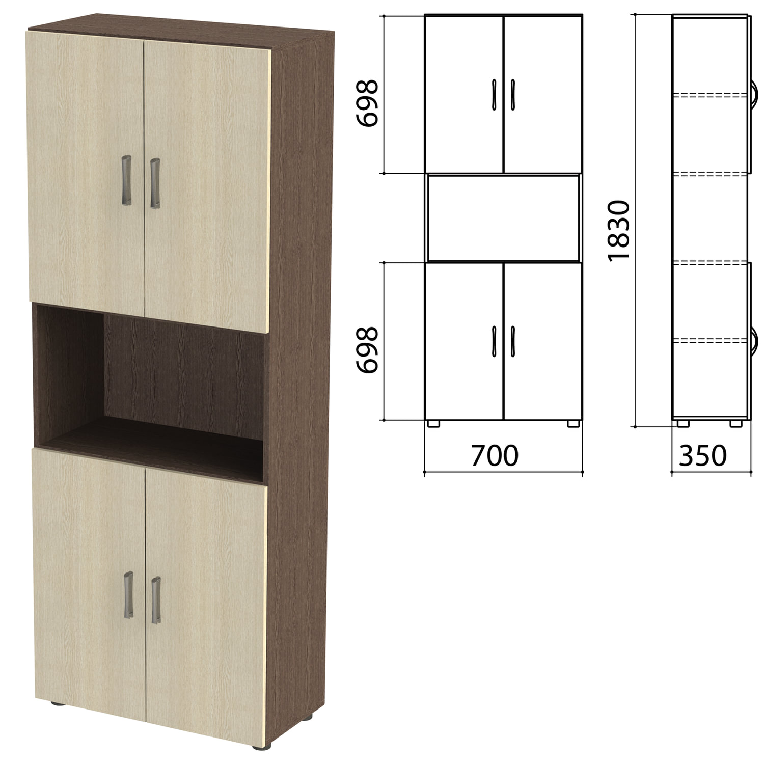 Шкаф полузакрытый "Канц", 700х350х1830 мм, цвет венге/дуб молочный (КОМПЛЕКТ) Код товара: 980469 12 484,42 ₽ Купить Производитель:КАНЦ Шкаф предназначен для хранения документов, архивов и других предметов обихода. Полки стационарные. Регулируемые опоры позволяют компенсировать возможные неровности пола. Производство: РоссияКаркас и фасады - ЛДСП толщиной 16 мм.Кромка - ПВХ толщиной 0,5 мм.Задняя стенка - HDF толщиной 3,2 мм.Регулируемые опоры.Поставляется в разобранном виде.В комплект входит крепеж и инструкция по сборке.4 полки.Цвет фасада - дуб молочный.Цвет каркаса - венге.Размер (ШхГхВ) - 700х350х1830 мм.Вес: 50,7 кгОбъём: 0.0835 м3Промежуточная упаковка: 1 штТранспортная упаковка: 1 шт Файлы Приложение-1.zip Приложение-2.pdf Приложение-3.pdf Приложение-4.pdf