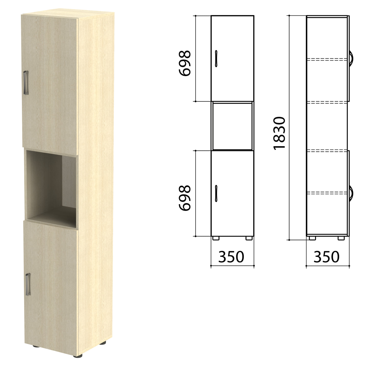 Шкаф полузакрытый "Канц", 350х350х1830 мм, цвет дуб молочный (КОМПЛЕКТ) Код товара: 980486 7 836,11 ₽ Купить Производитель:КАНЦ Шкаф предназначен для хранения документов, архивов и других предметов обихода. Полки стационарные. Регулируемые опоры позволяют компенсировать возможные неровности пола. Производство: РоссияКаркас и фасады - ЛДСП толщиной 16 мм.Кромка - ПВХ толщиной 0,5 мм.Задняя стенка - HDF толщиной 3,2 мм.Регулируемые опоры.Поставляется в разобранном виде.В комплект входит крепеж и инструкция по сборке.4 полки.Цвет фасада - дуб молочный.Цвет каркаса - дуб молочный.Размер (ШхГхВ) - 350х350х1830 мм.Вес: 32,6 кгОбъём: 0.0532 м3Промежуточная упаковка: 1 штТранспортная упаковка: 1 шт Файлы Приложение-1.zip Приложение-2.pdf Приложение-3.doc Приложение-4.pdf