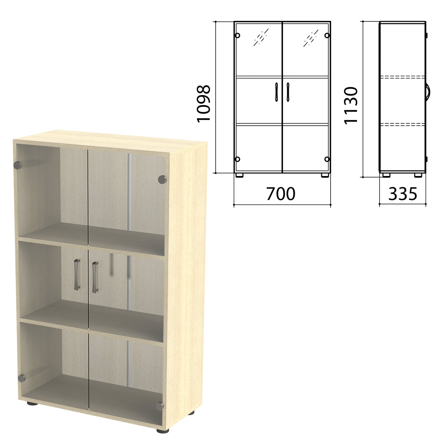 Шкаф закрытый со стеклом "Канц", 700х335х1130 мм, цвет дуб молочный (КОМПЛЕКТ) Код товара: 980502 13 833,17 ₽ Купить Производитель:КАНЦ Шкаф предназначен для хранения документов, архивов и других предметов обихода. Оборудованы пластиковыми не регулируемыми опорами. Полки стационарные. Производство: РоссияКаркас и фасады - ЛДСП толщиной 16 мм.Кромка - ПВХ толщиной 0,5 мм.Задняя стенка - HDF толщиной 3,2 мм.Регулируемые опоры.Поставляется в разобранном виде.2 полки.Цвет каркаса - дуб молочный.Размер (ШхГхВ) - 700х350х1130 мм.Вес: 28,2 кгОбъём: 0.0475 м3Промежуточная упаковка: 1 штТранспортная упаковка: 1 шт Приложение-1.zip Приложение-2.pdf Приложение-3.pdf