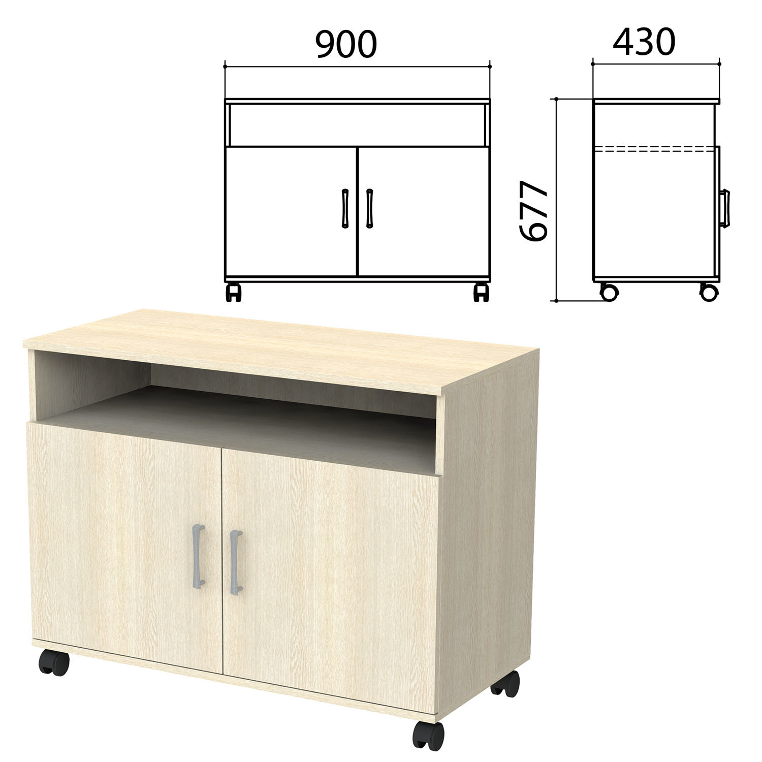 Тумба для оргтехники "Канц", 900х430х677 мм, 2 двери, цвет дуб молочный (КОМПЛЕКТ) Код товара: 980508 6 847,8 ₽ Купить Производитель:КАНЦ Тумба для оргтехники имеет закрытое отделение и нишу для размещения канцелярских товаров и пачечной бумаги. Производство: РоссияКрышка тумбы, каркас, фасады - ЛДСП толщиной 16 мм.Кромка - ПВХ толщиной 0,5 мм.2 двери.В комплект входит крепеж и инструкция по сборке.Цвет фасада и крышки - дуб молочный.Цвет каркаса - дуб молочный.Размер (ШхГхВ) - 900х430х620 мм.Вес: 30 кгОбъём: 0.0383 м3Промежуточная упаковка: 1 штТранспортная упаковка: 1 шт Приложение-1.zip Приложение-2.pdf Приложение-3.pdf