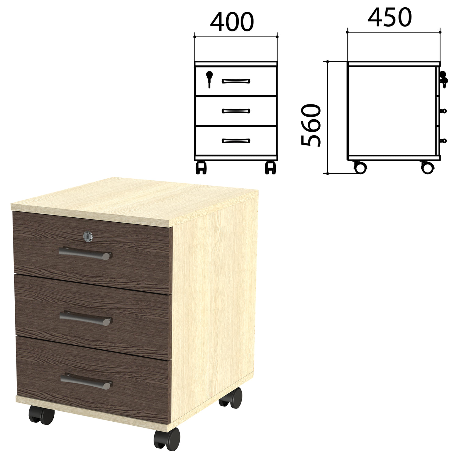 Тумба подкатная "Канц", 400х450х560 мм, 3 ящика, замок, цвет дуб молочный/венге (КОМПЛЕКТ) Код товара: 980514 6 837,87 ₽ Купить Производитель:КАНЦ Тумба подкатная предназначена для хранения канцелярских принадлежностей и документов. Оборудована 3 ящиками на роликовых направляющих. Наличие колесных опор обеспечивает легкий доступ и возможность удобного размещения тумбы под письменным столом. Производство: РоссияКрышка тумбы, каркас, стенки ящиков и фасады - ЛДСП 16 мм.Кромка - ПВХ толщиной 0,5 мм.Дно ящиков - HDF толщиной 3,2 мм.3 ящика, верхний с замком.В комплект входит крепеж и инструкция по сборке.Цвет фасада - венге.Цвет каркаса - дуб молочный.Размер (ШхГхВ) - 400х450х560 мм.Вес: 20 кгОбъём: 0.0354 м3Промежуточная упаковка: 1 штТранспортная упаковка: 1 шт Приложение-1.zip Приложение-2.pdf Приложение-3.pdf