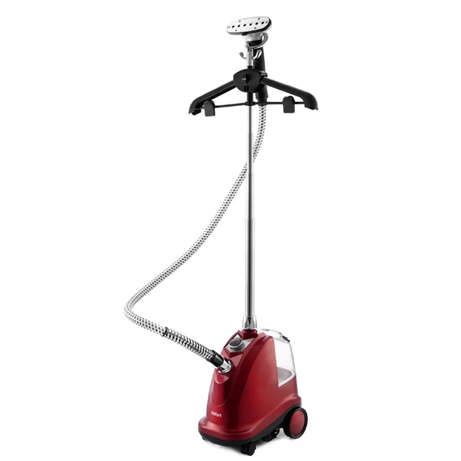 Отпариватель KITFORT KT-979, 2200 Вт, пар 45 г/мин, резервуар 3 л, 4 режима, 2 насадки, красный Код товара: 455969 11 930,7 ₽ Купить Производитель:KITFORT Вертикальный отпариватель KITFORT КТ-979 позволяет прогладить любые вещи и изделия из текстиля даже со сложной текстурой, которые обычно не гладят. Кроме глажки и отпаривания, устройство обрабатывает вещи мощной струёй горячего пара, обеспечивая чистку и дезинфекцию. Во время отпаривания одежда может висеть на вешалке отпаривателя, установленной на телескопической стойке, на обычной вешалке, подвешенной к отпаривателю, или на сушилке для белья. Шторы, например, можно гладить, не снимая их с карниза. Вода из резервуара под действием силы тяжести поступает в бойлер, где нагревается и превращается в пар. Пар проходит по паровому шлангу и выходит из сопел на рабочей поверхности парового утюжка. Утюжок лёгкий и удобно лежит в руке. Отпариватель имеет 4 режима работы: от минимальной подачи пара (регулятор на 1) до максимальной (регулятор на 4). В комплекте идёт насадка для очистки вещей от шерсти и зажим для проглаживания стрелок на брюках. Ёмкость съёмного резервуара – 3 литра, этого хватит на 66 минут непрерывного отпаривания. Телескопическая стойка и вешалка складные, а корпус отпаривателя компактный, что позволяет удобно хранить его в шкафу. Для мобильности корпус оснащён колесиками. В комплекте также есть варежка с тефлоновым покрытием, которая защищает руки от ожогов паром или горячими поверхностями во время работы. Производитель на свое усмотрение и без дополнительных уведомлений может менять комплектацию, внешний вид, страну производства и технические характеристики модели.Производство: КитайКонструкция: напольнаяМощность: 2200 ВтЁмкость резервуара для воды: 3 литрМаксимальная температура: 0 °CКоличество насадок в комплекте: 1 шт.Серия: KT-97Кол-во режимов: 4Расход пара: 45 г/минВремя нагрева: 60 секундДлина шланга: 1.3 мДлина шнура: 1.9 мЦвет корпуса: красныйВес: 6.6 кгРазмер упаковки: 47 × 42.5 × 29.4 смОбъём: 0.0587 м3Промежуточная упаковка: 1 штТранспортная упаковка: 1 штШтрих-код: 4630017913862 Файлы Приложение-1.pdf Сертификат-1.jpg Сертификат-2.jpg Сертификат-3.jpg Сертификат-4.jpg Сертификат-5.jpg Сертификат-6.jpg Сертификат-7.jpg Сертификат-8.jpg Сертификат-9.jpg Сертификат-10.jpg