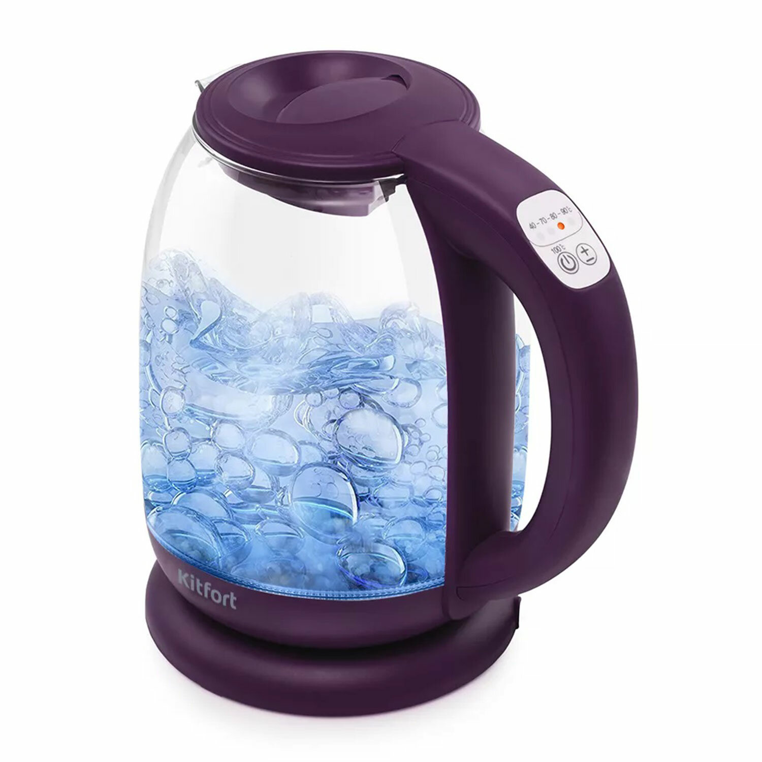 Чайник KITFORT КТ-640-5, 1,7 л, 2200 Вт, закрытый нагревательный элемент, ТЕРМОРЕГУЛЯТОР, стекло, фиолетовый Код товара: 456015 2 441,76 ₽ Купить Производитель:KITFORT Стильный чайник KITFORT КТ-640 выполнен из стекла, пластика и нержавеющей стали. За счёт оригинального дизайна он идеально впишется в любой интерьер. Объем чайника составляет 1,7 л, что делает его идеальным для семьи или большой компании. Благодаря мощности 2200 Вт чайник вскипятит воду за считаные минуты. За счет быстрого закипания чайник экономит электроэнергию. Чайник оснащён электронным терморегулятором и может нагреть воду от 40 до 100 °С, что очень удобно при заваривании различных сортов чая, приготовлении кофе и подогрева детского питания. Температура контролируется встроенным в дно чайника термодатчиком. Корпус чайника выполнен из экологически чистого термостойкого стекла. Он имеет большое горлышко – это облегчает доступ внутрь при мытье, а также съёмный фильтр-сетку для защиты от накипи. При включении чайника по периметру дна загорается подсветка, которая является индикатором работы и одновременно подсвечивает воду разными цветами в зависимости от температурного режима. Производитель оставляет за собой право без предварительного уведомления вносить изменения в технические характеристики, комплектацию и конструкцию, не ухудшающие эксплуатационные характеристики изделия.Производство: КитайОбъем: 1.7 лМощность: 2200 ВтМатериал корпуса: пластик, термостойкое стеклоВид нагревательного элемента: закрытыйТерморегулятор: даАвтоотключение при закипании: даСерия: КТ-640Звуковой сигнал при закипании: даОтключение при отсутствии воды: даИндикатор включения: даИндикация уровня воды: даВращение на 360°: даПодсветка: даФильтр от накипи: даДлина шнура: 0.64 мЦвет корпуса: фиолетовыйШирина: 225 ммВысота: 237 ммГлубина: 159 ммВес: 0.9 кгРазмер упаковки: 23.3 × 22.1 × 17.6 смОбъём: 0.0091 м3Промежуточная упаковка: 1 штТранспортная упаковка: 1 штШтрих-код: 4630017744725 Файлы Приложение-1.pdf Сертификат-1.jpg Сертификат-2.jpg Сертификат-3.jpg Сертификат-4.jpg Сертификат-5.jpg Сертификат-6.jpg Сертификат-7.jpg Сертификат-8.jpg Сертификат-9.jpg Сертификат-10.jpg