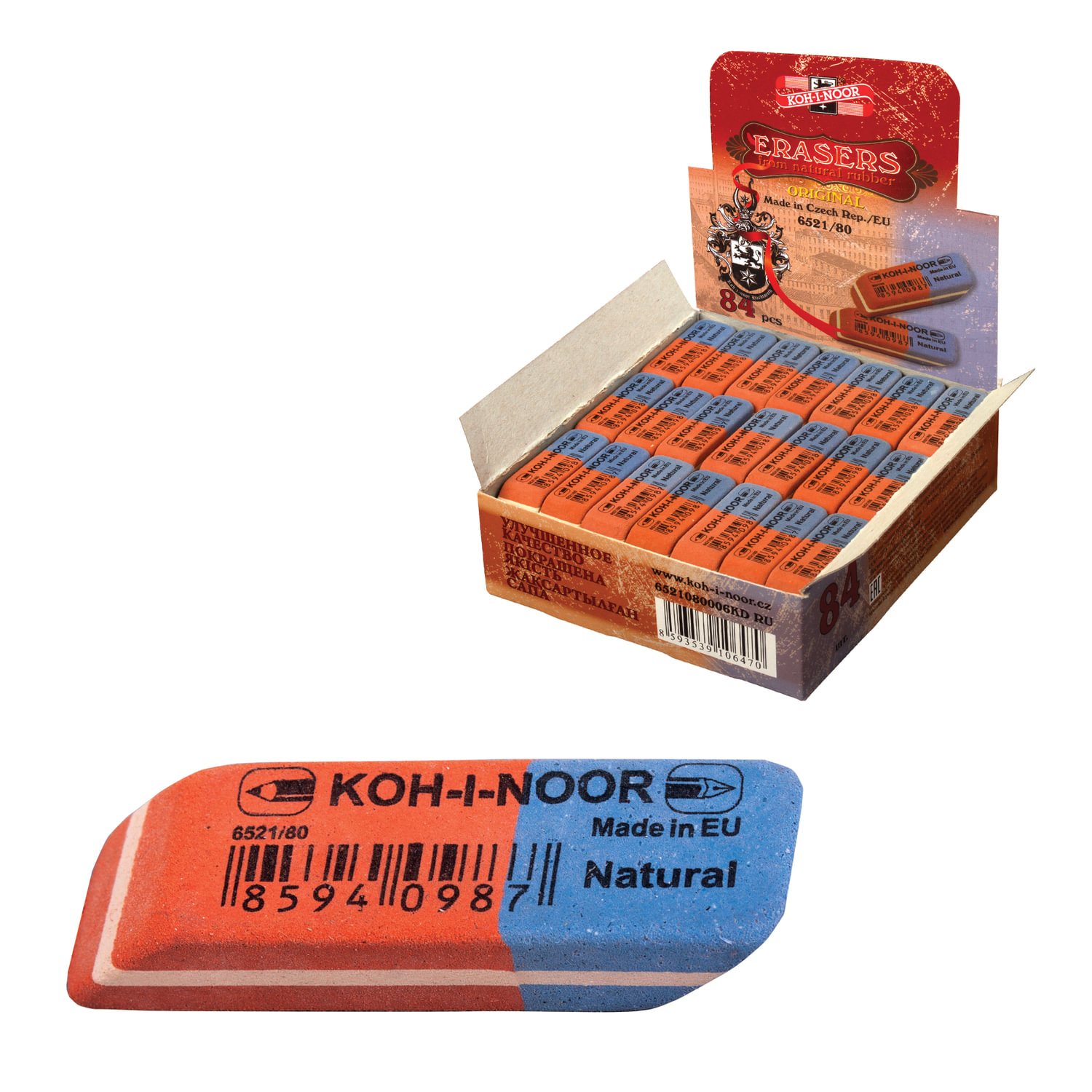 Ластик KOH-I-NOOR 6521/80, 42х14х8 мм, красно-синий, прямоугольный, скошенные края, натуральный каучук Код товара: 224329 25,21 ₽ Купить Производитель:KOH-I-NOOR Комбинированный ластик KOH-I-NOOR предназначен для удаления чернил и надписей, сделанных чернографитным карандашом. Ластик сделан из натурального каучука и обеспечит лёгкое и чистое стирание без повреждения поверхности бумаги и без образования бумажной пыли. Поставляется в прямоугольной форме со скошенными краями, позволяющими стирать даже тонкие линии. Ластик разделен на две части: красная стирает надписи, сделанные чернографитным карандашом, синяя - чернила. Размер - 42х14х8 мм.Производство: ЧехияКоличество в упаковке: 1 шт.Материал: натуральный каучукФорма: прямоугольнаяЦвет: красный/синийСерия: 6521Не оставляет бумажной пыли: даРазмер: 42х14х8 ммУпаковка: дисплейВес: 7 грРазмер упаковки: 0.8 × 4.2 × 1.4 смПромежуточная упаковка: 84 штТранспортная упаковка: 672 штШтрих-код: 85940987 Сертификат-1.jpg Сертификат-2.jpg Сертификат-3.jpg