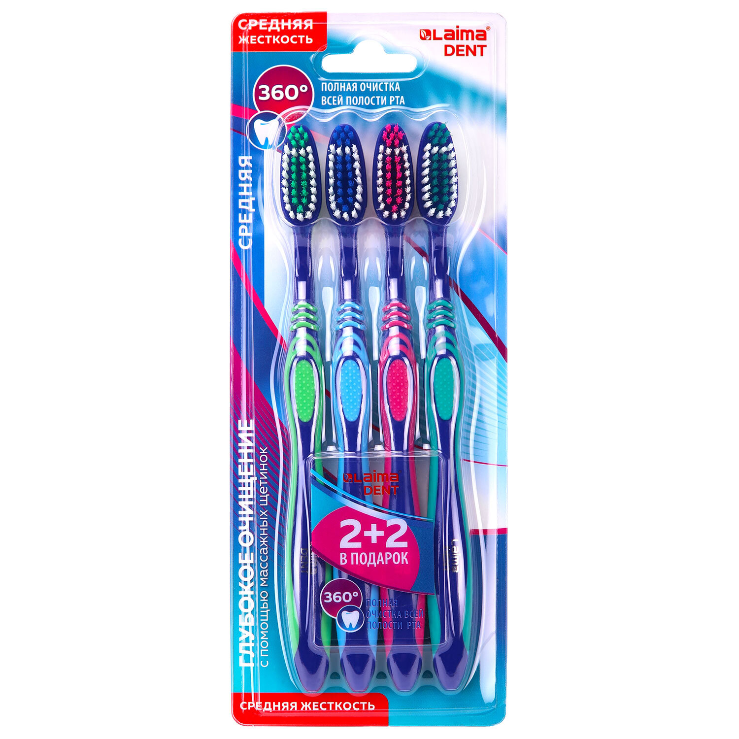 Зубная щетка средней жесткости, с чисткой языка, гибкая, КОМПЛЕКТ 4 шт., LAIMA DENT Код товара: 609323 152,78 ₽ Купить Производитель:LAIMA DENT Зубная щетка LAIMA DENT – идеальный выбор для всей семьи! Обеспечивает качественную гигиену полости рта. Щетина средней жесткости обеспечивает максимальное очищение, щетинки эффективно удаляют налет и бактерии, предотвращая кариес и зубной камень. Массажная вставка обеспечивает бережную чистку языка. Компактная головка щетки легко проникает в труднодоступные места. Удобная ручка для комфортного захвата. Важно! Перед использованием новую зубную щетку промыть в теплой воде (не более 60 °С) с мылом. Более высокая температура воды может деформировать материал щетки и её ручки. Во время использования рекомендуется хранить щетку в вертикальном положении, щетиной вверх. Рекомендуемый срок службы зубной щетки – 2-3 месяца.Производство: КитайТип товара: зубная щеткаЖесткость щетины: средняяНаличие скребка для языка: даПрорезиненная вставка на рукоятке : даКоличество в упаковке: 4 шт.Особенности щетки: с чисткой языкаСерия: DENT SETВозрастная группа: взрослаяВес: 94 грРазмер упаковки: 2.2 × 24 × 8.8 смОбъём: 0.0007 м3Промежуточная упаковка: 12 штТранспортная упаковка: 72 штШтрих-код: 4606224439518 Сертификат-1.jpg Сертификат-2.jpg